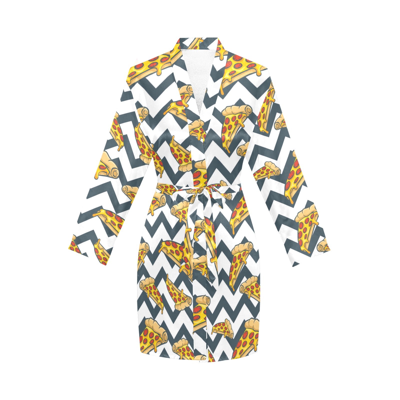 Pizza design pattern Women's Long Sleeve Belted Night Robe