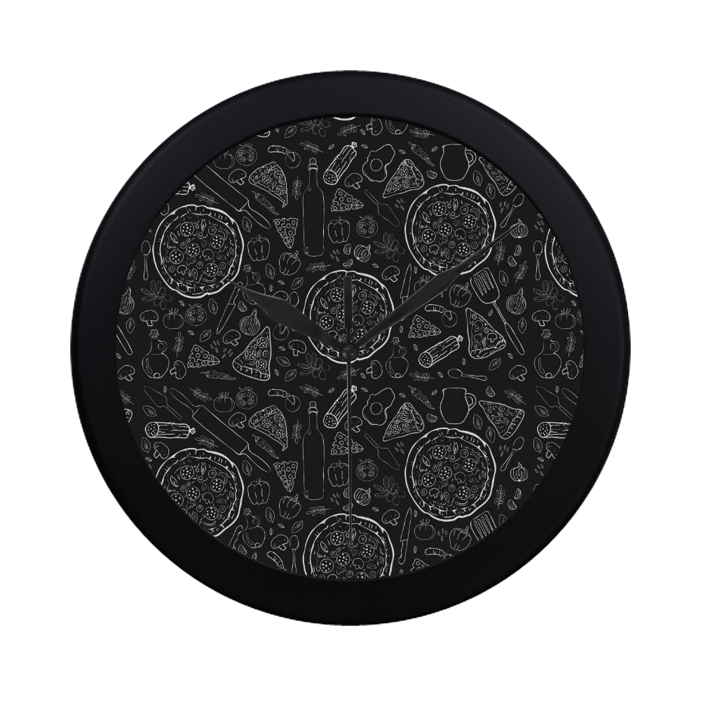 Pizza pattern Elegant Black Wall Clock is a uniqued design and limited item. It made to order, hand printed, and sewn with love in our factory.