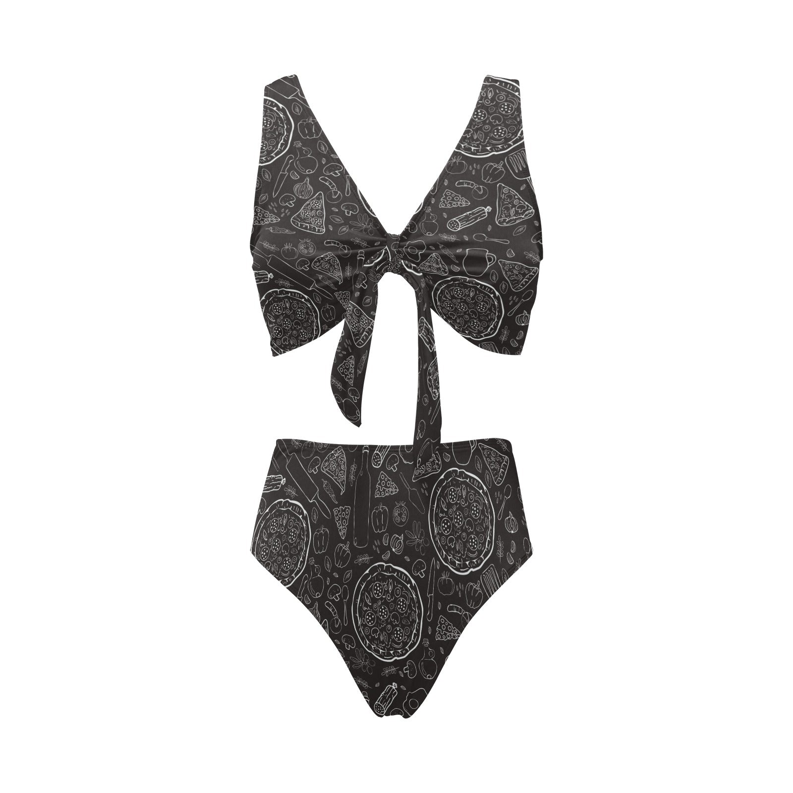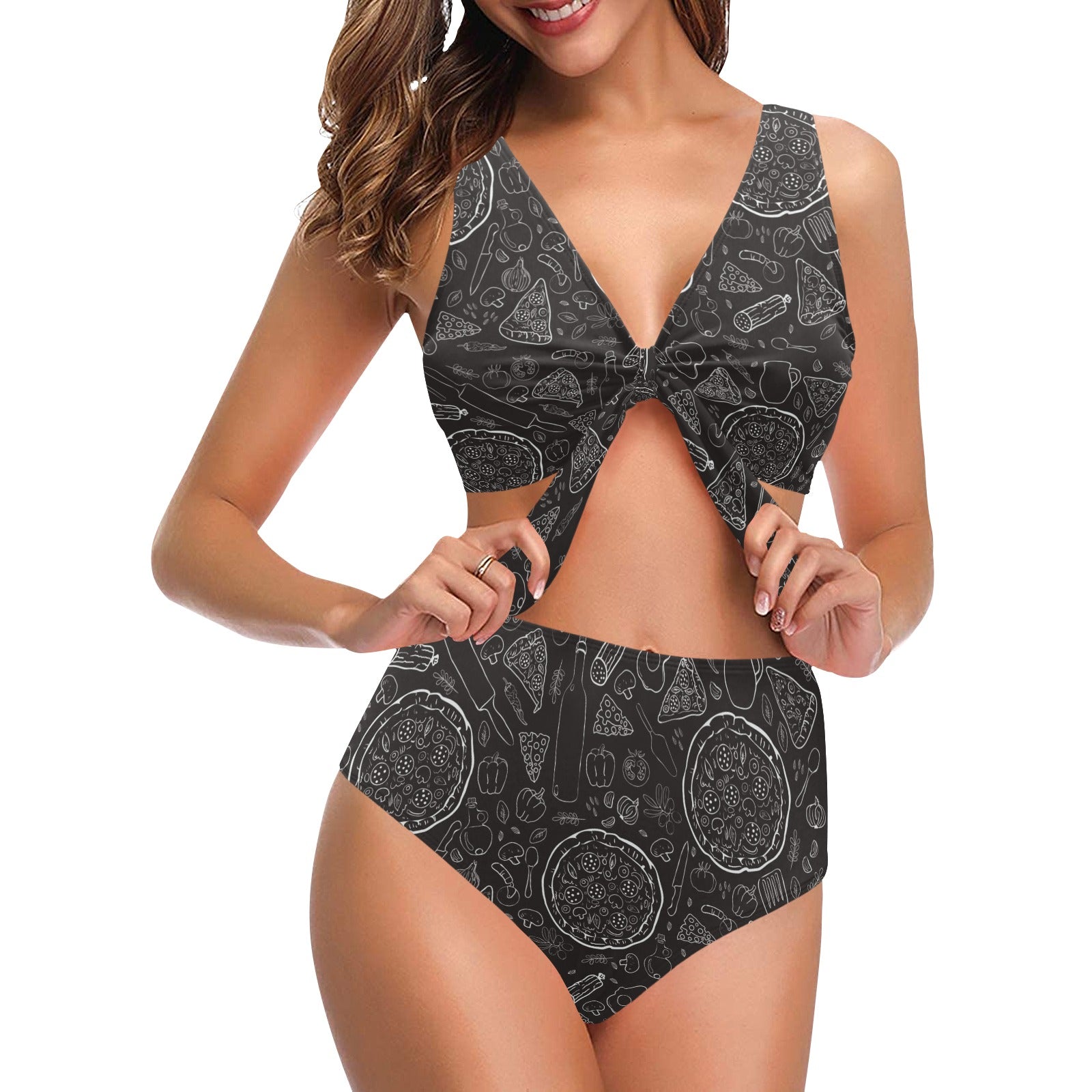 Pizza pattern Chest Bowknot High Waisted Bikini Swimsuit