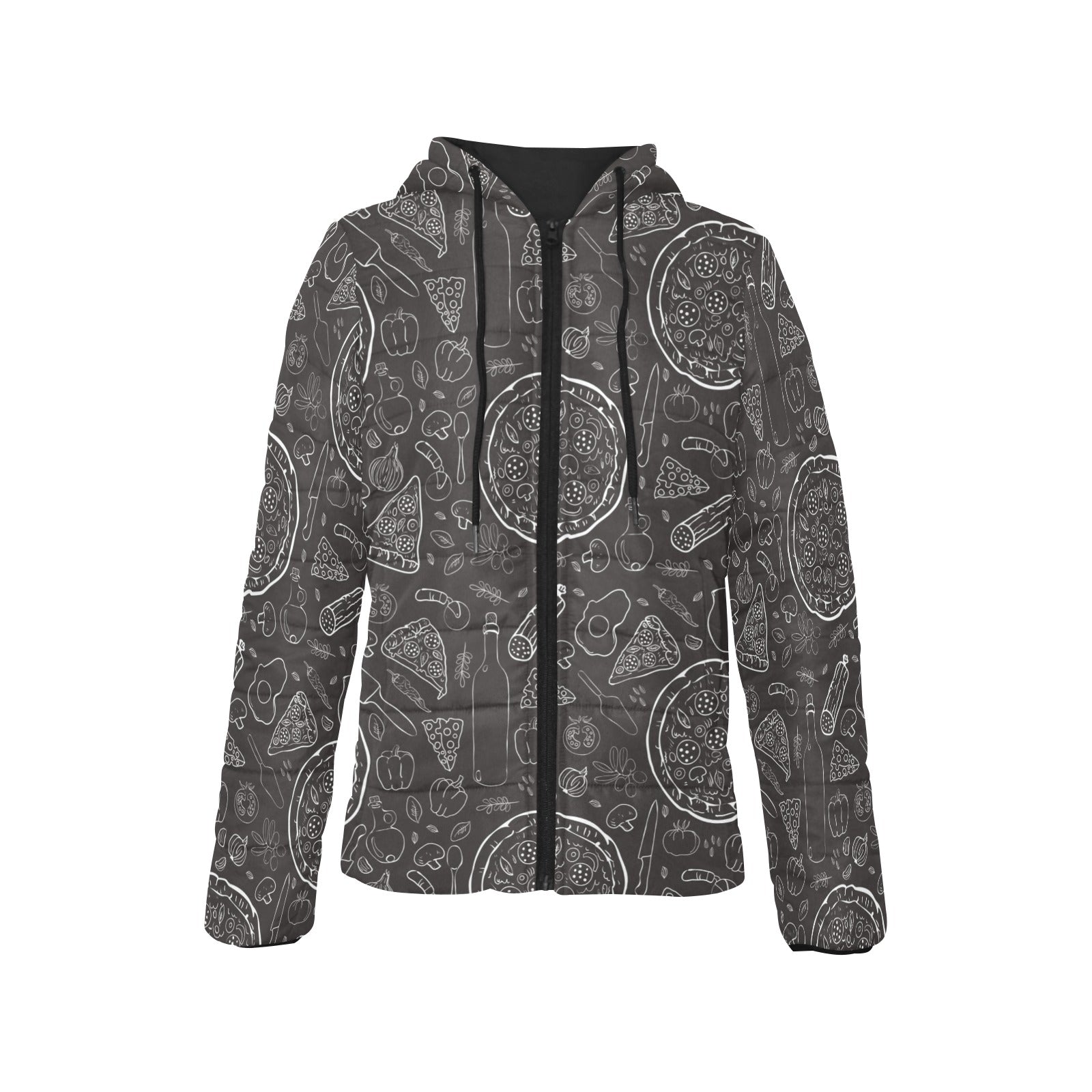 Pizza pattern Women's Padded Hooded Jacket