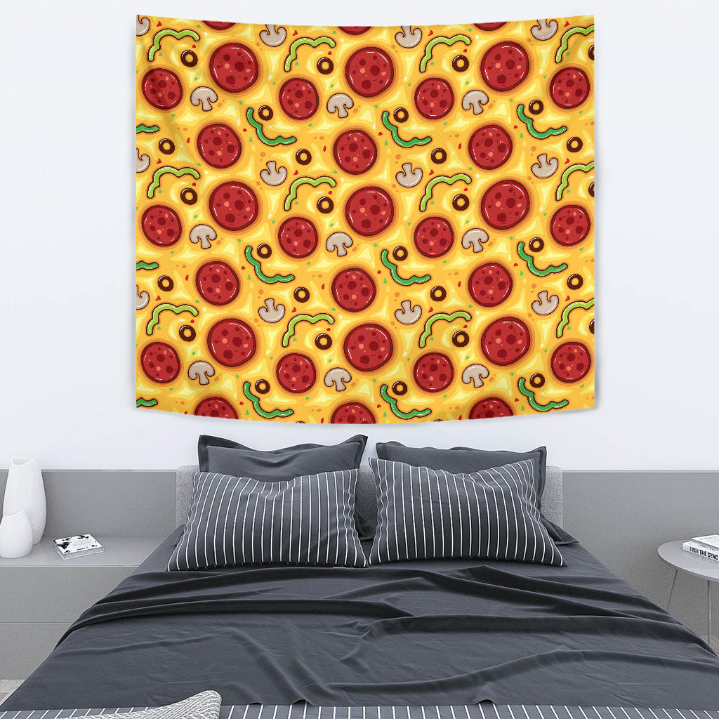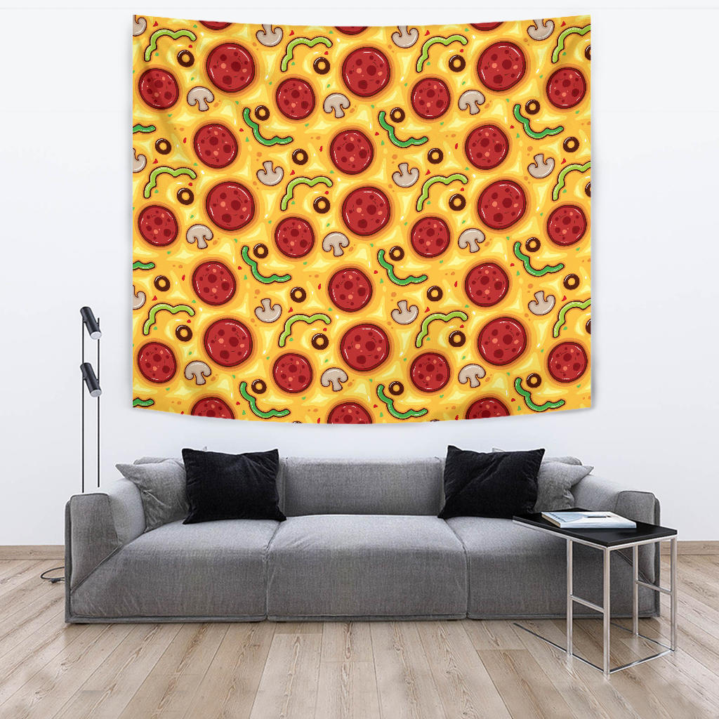 Pizza texture pattern Tapestry is a uniqued design and limited item. It made to order, hand printed, and sewn with love in our factory.