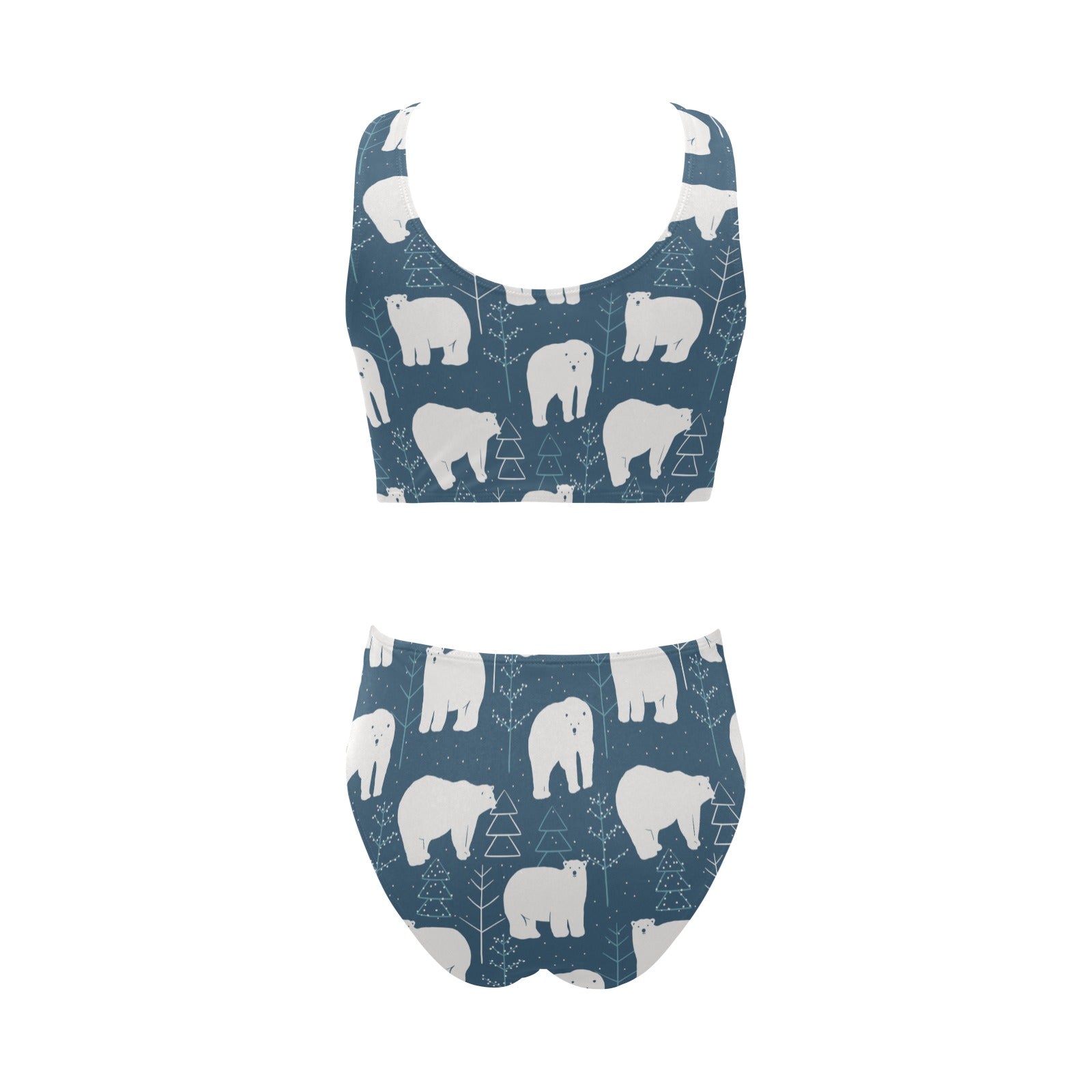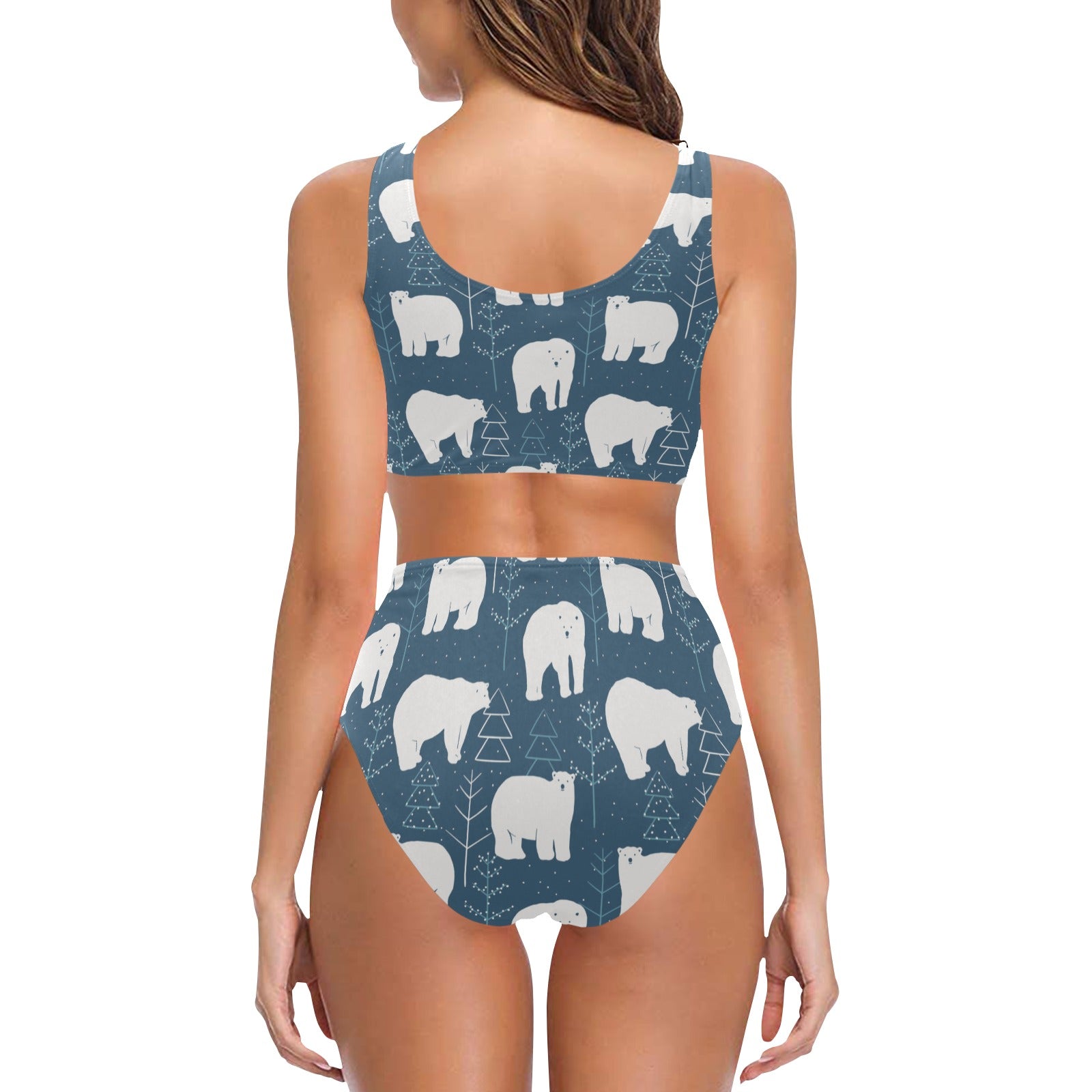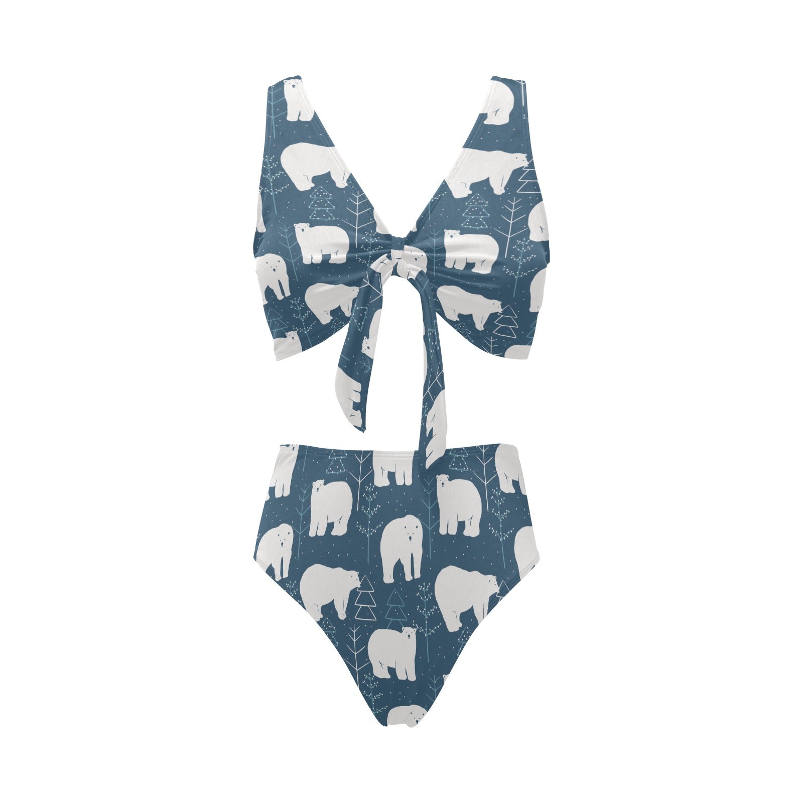 polar bear mother her child pattern Chest Bowknot High Waisted Bikini Swimsuit