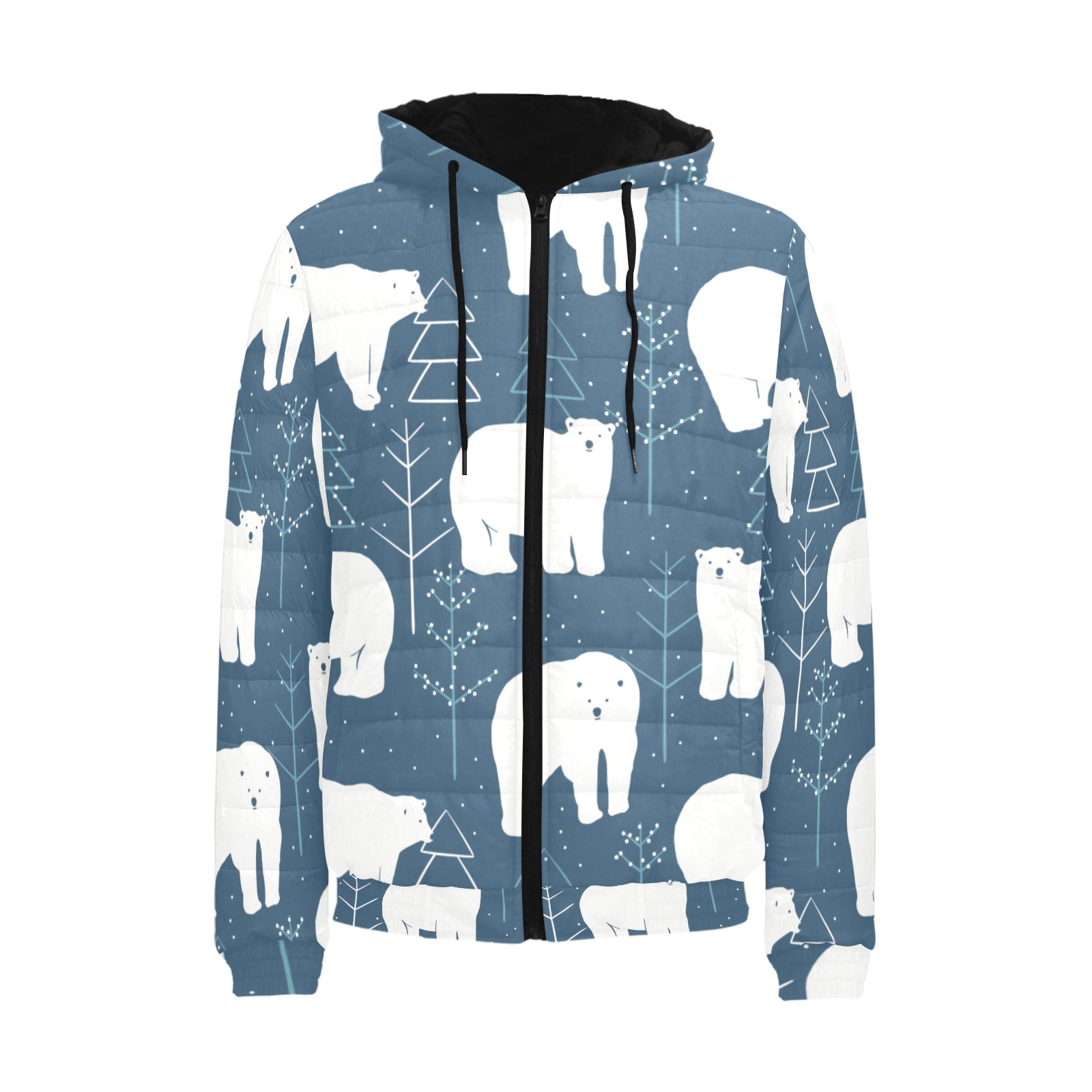 polar bear mother her child pattern Men's Padded Hooded Jacket