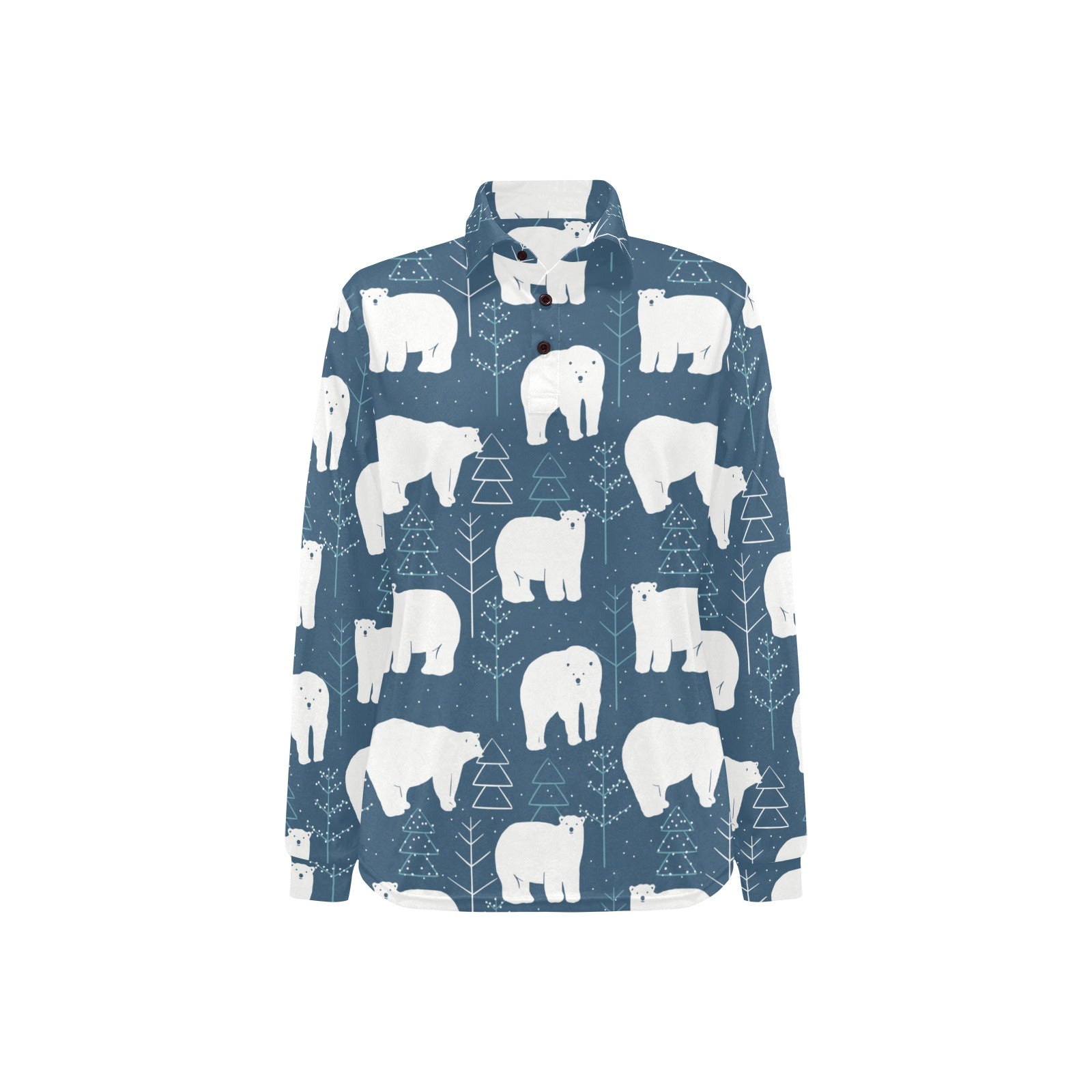 polar bear mother her child pattern Women's Long Sleeve Polo Shirt