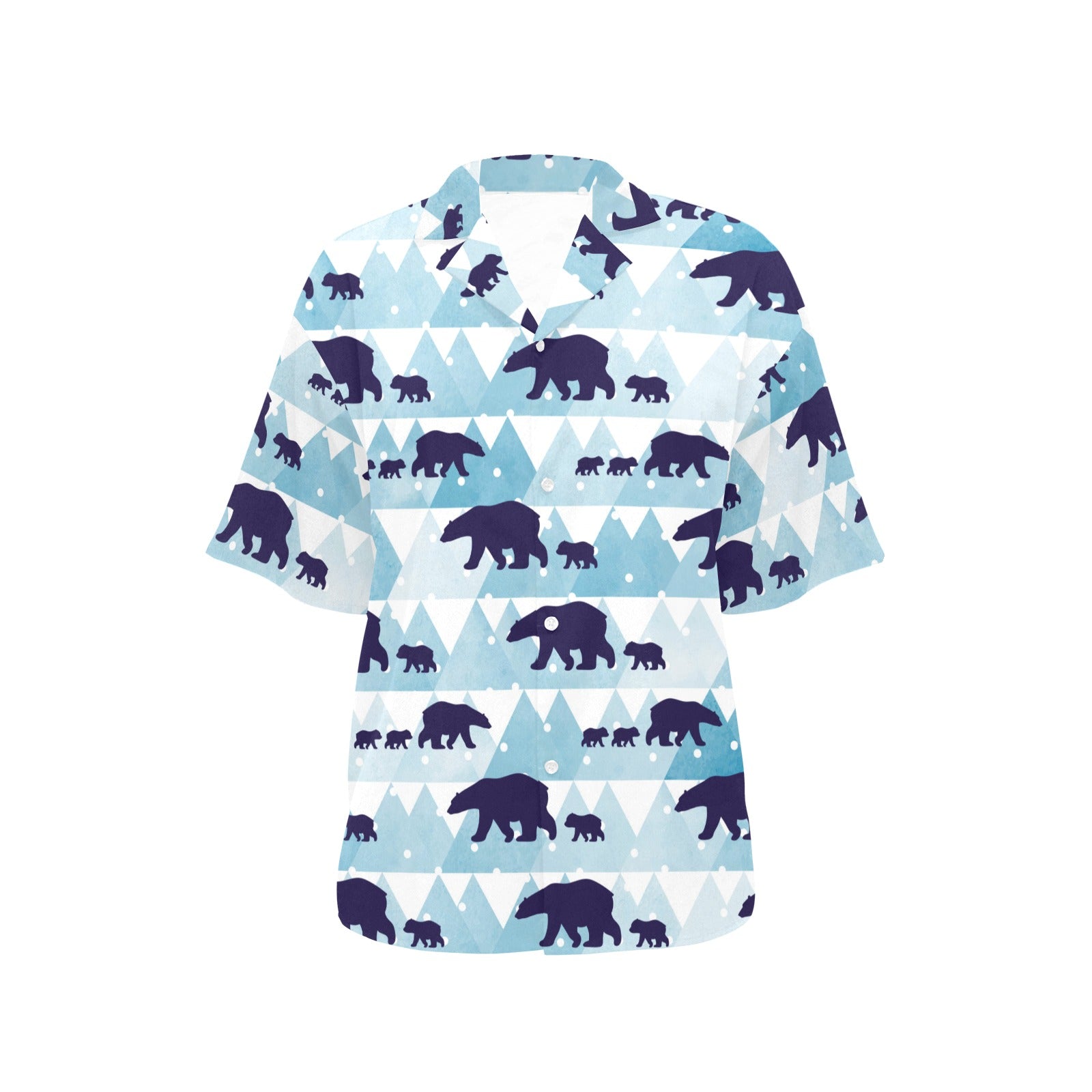 polar bear winter snow pattern Women's All Over Print Hawaiian Shirt