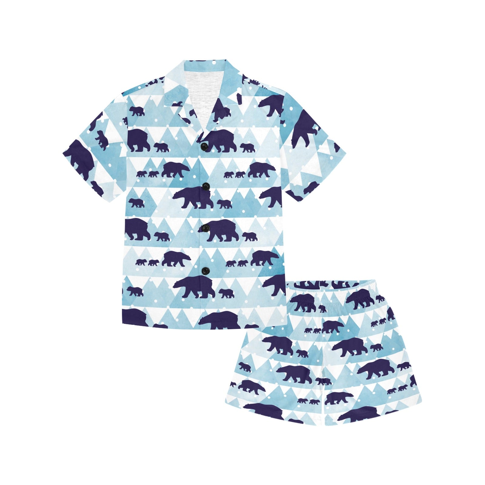 polar bear winter snow pattern Kids' Boys' Girls' V-Neck Short Pajama Set