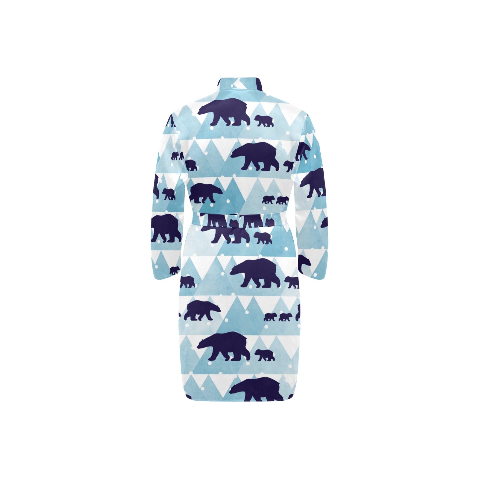 polar bear winter snow pattern Men's Long Sleeve Belted Night Robe