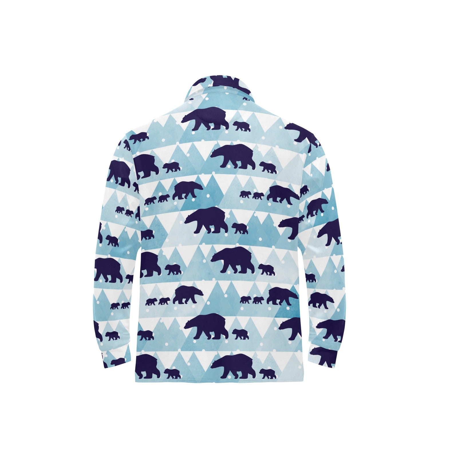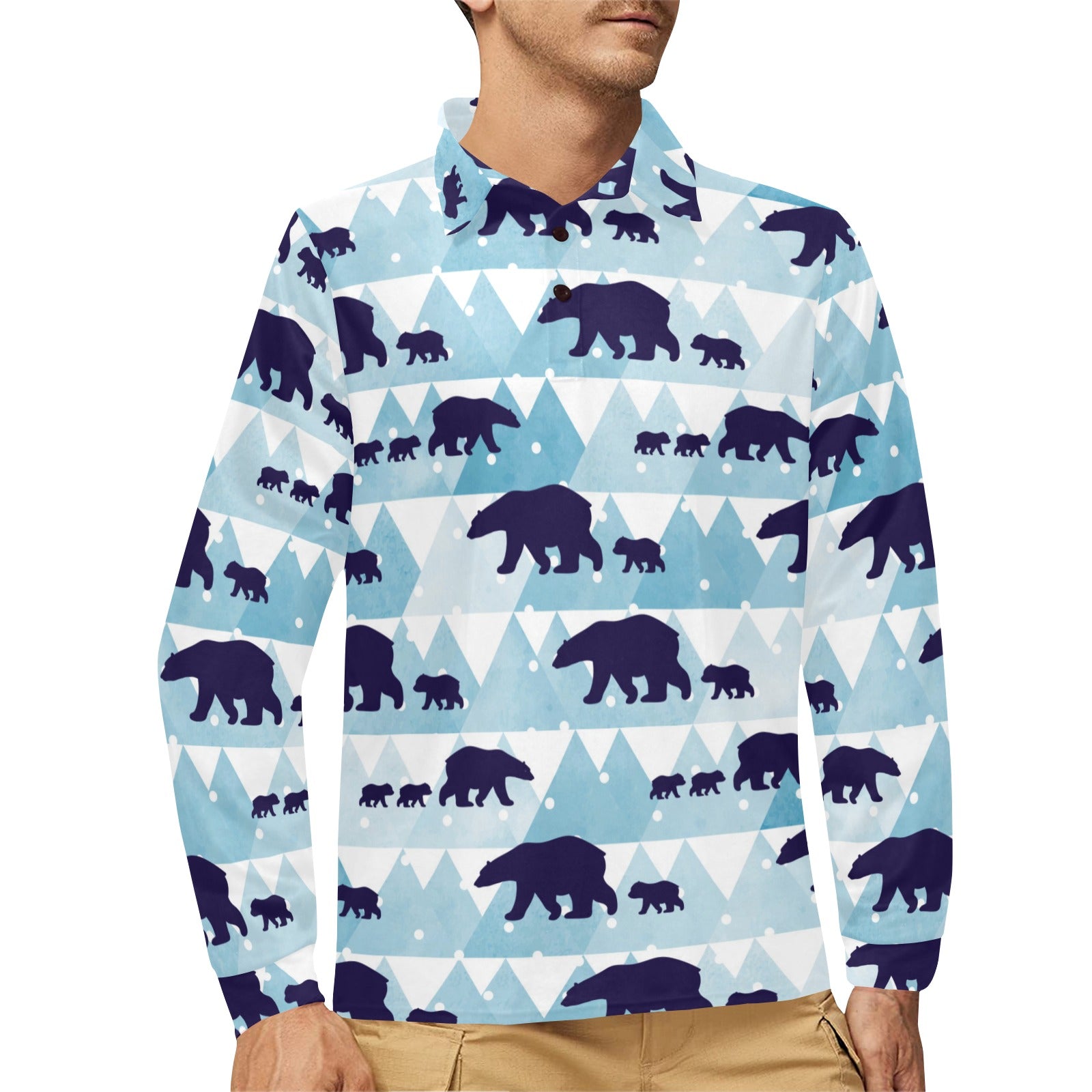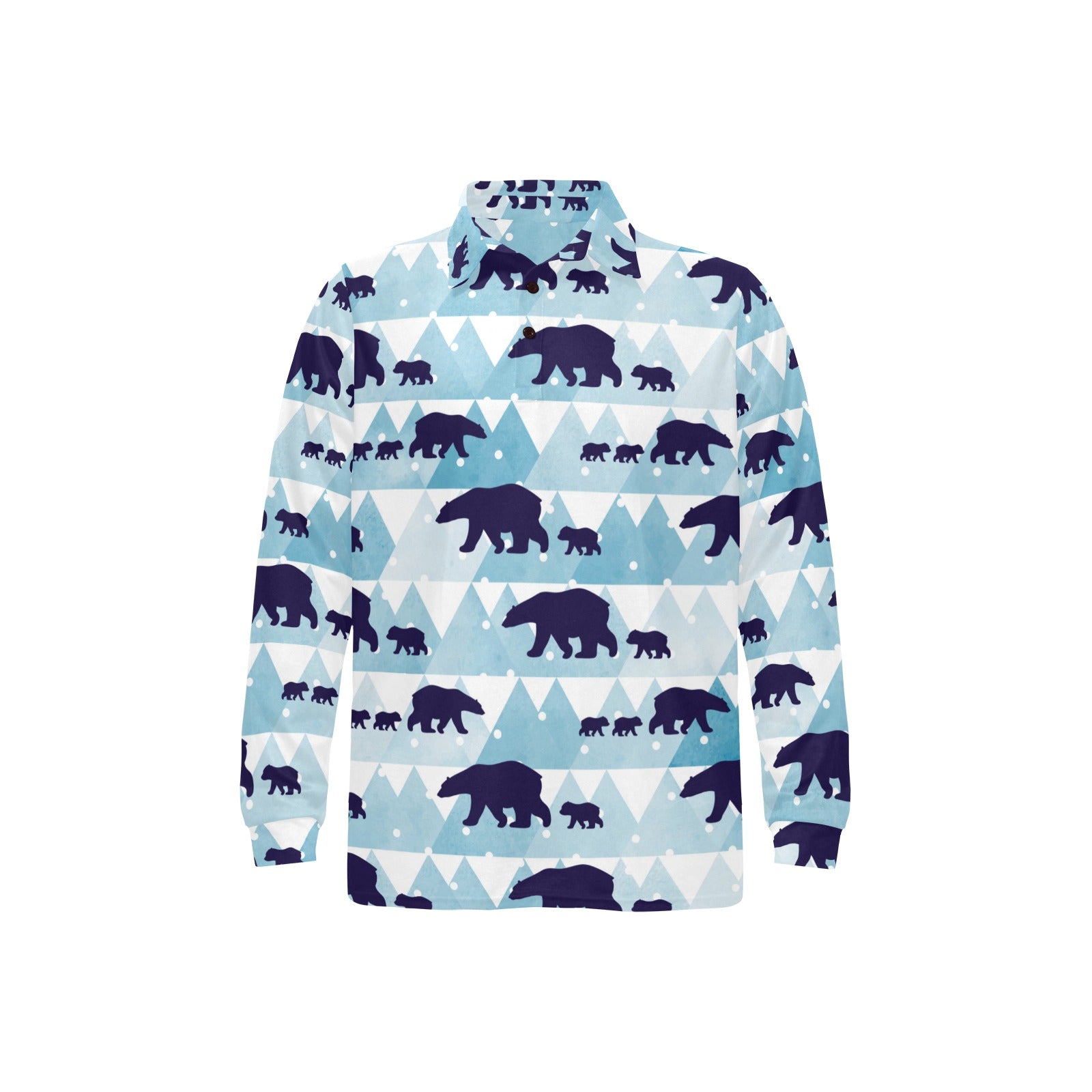 polar bear winter snow pattern Men's Long Sleeve Polo Shirt