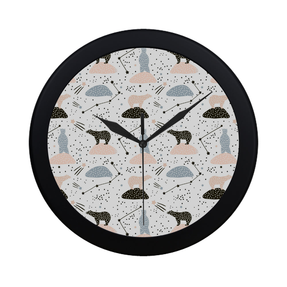 Polar bears star poka dot pattern Elegant Black Wall Clock