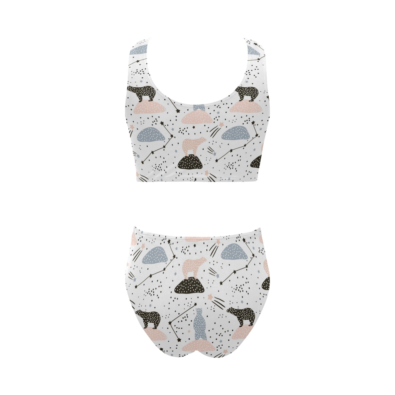 Polar bears star poka dot pattern Chest Bowknot High Waisted Bikini Swimsuit