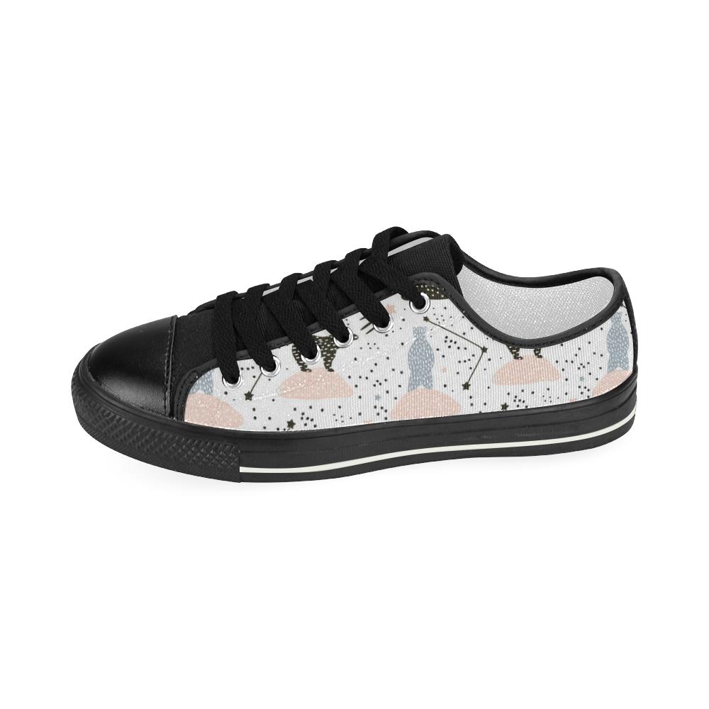 Polar bears star poka dot pattern Kids' Boys' Girls' Low Top Canvas Shoes Black