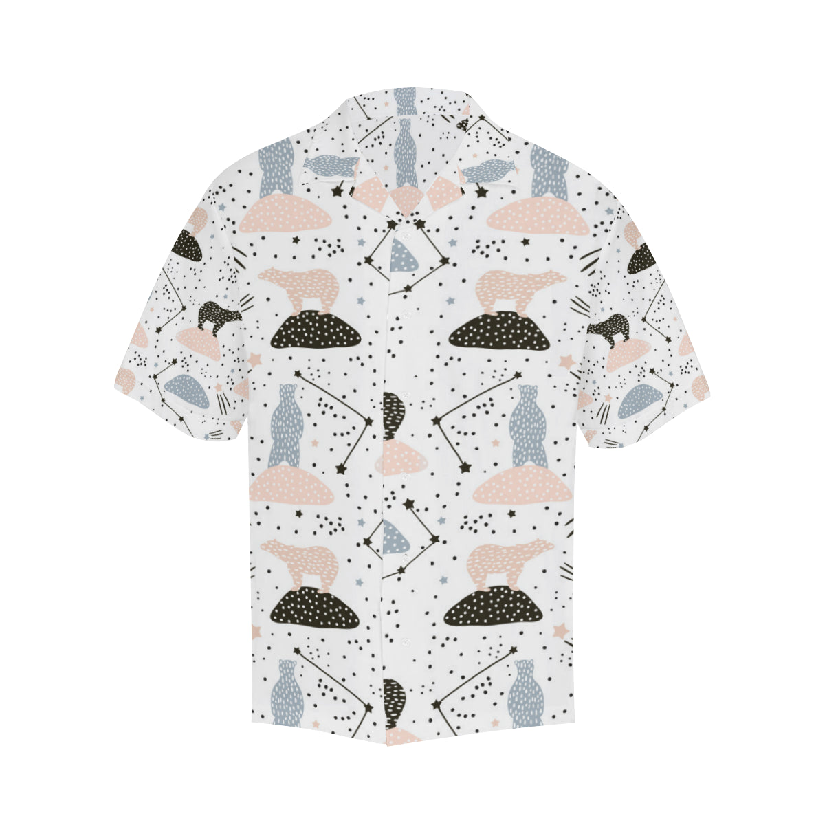 Polar bears star poka dot pattern Men's All Over Print Hawaiian Shirt is a uniqued design and limited item. It made to order, hand printed, and sewn with love in our factory.