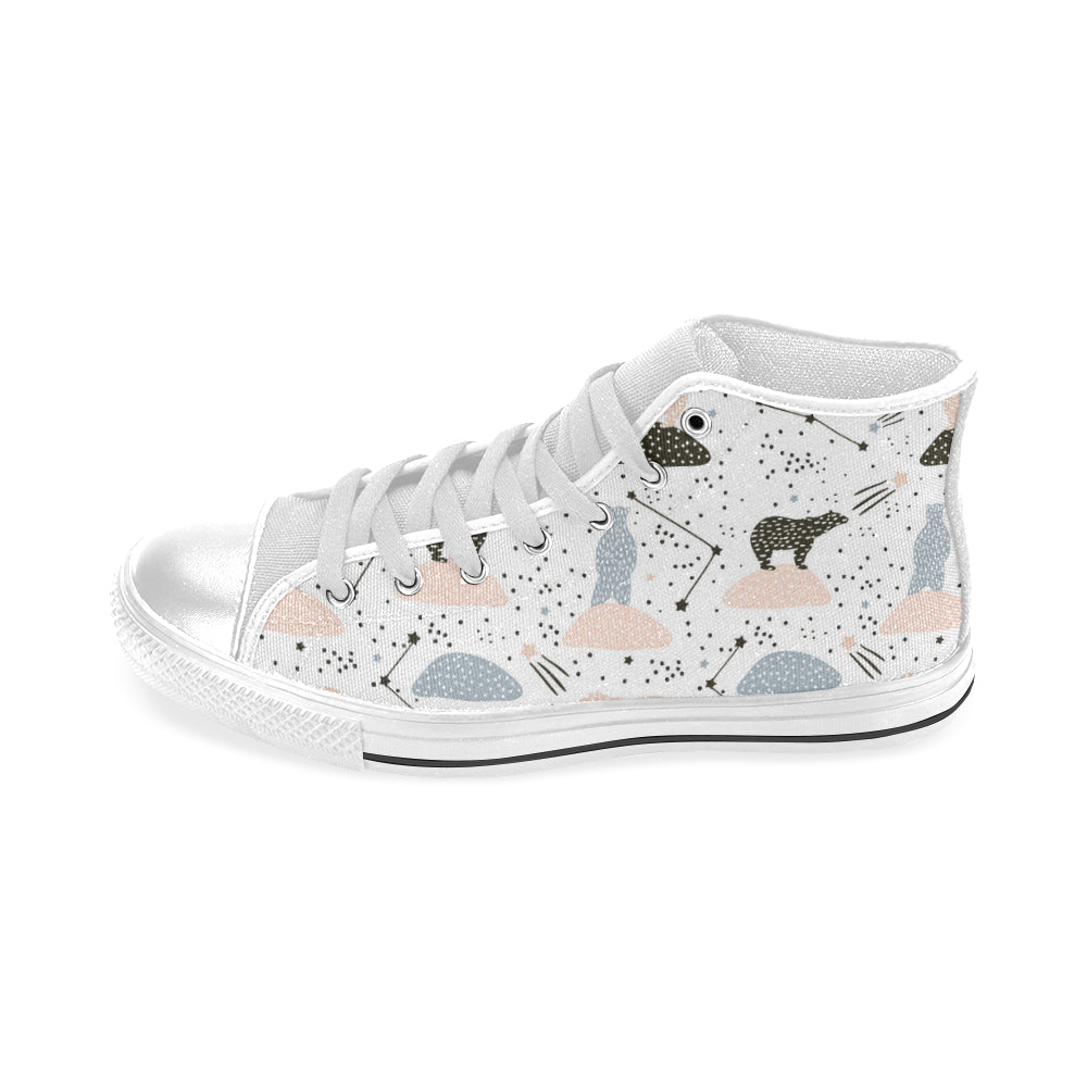 Polar bears star poka dot pattern Men's High Top Canvas Shoes White