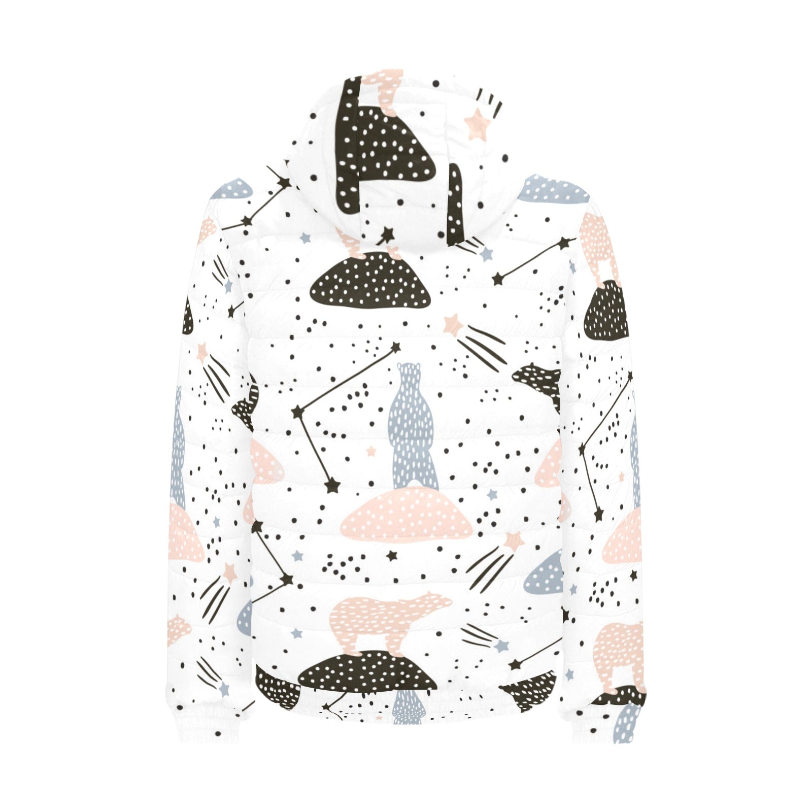 Polar bears star poka dot pattern Men's Padded Hooded Jacket