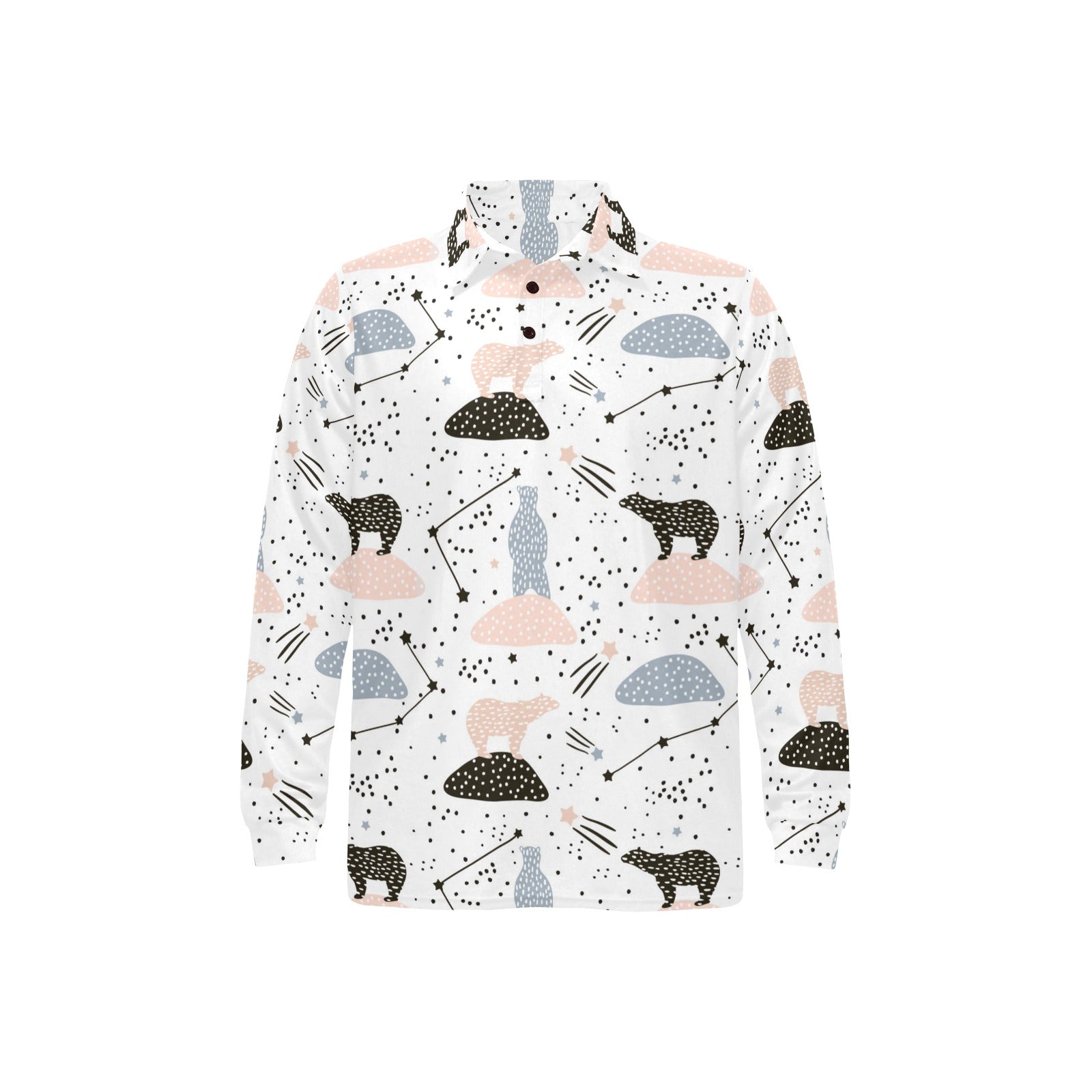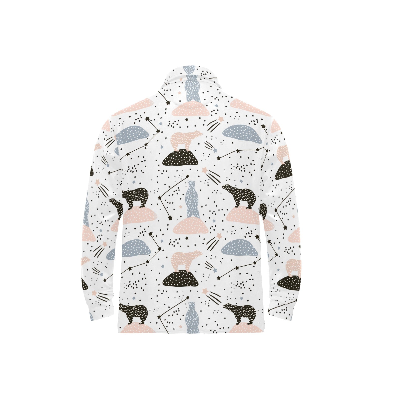 Polar bears star poka dot pattern Men's Long Sleeve Polo Shirt