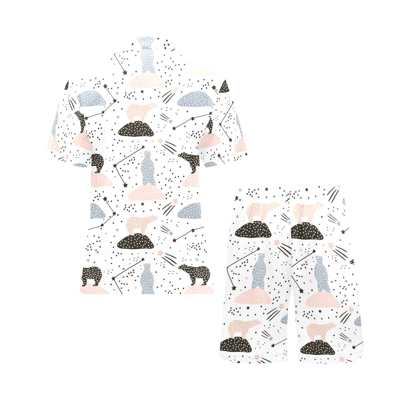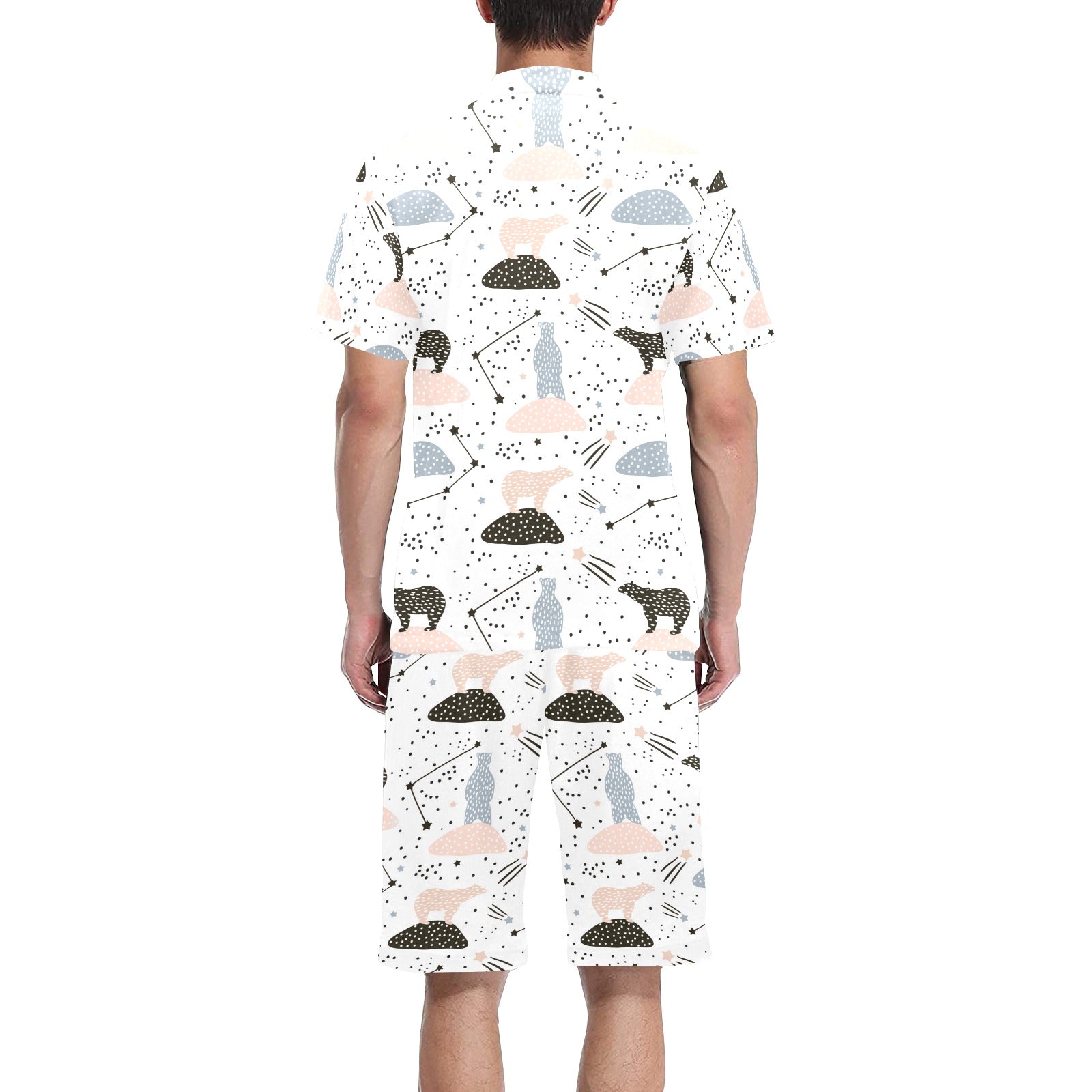 Polar bears star poka dot pattern Men's V-Neck Short Pajama Set