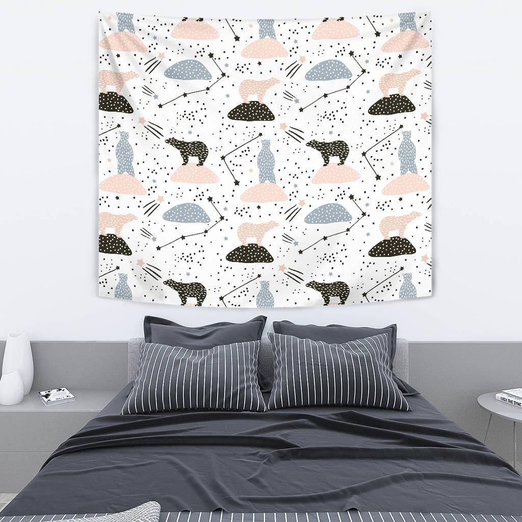 Polar Bears Star Poka Dot Pattern Wall Tapestry