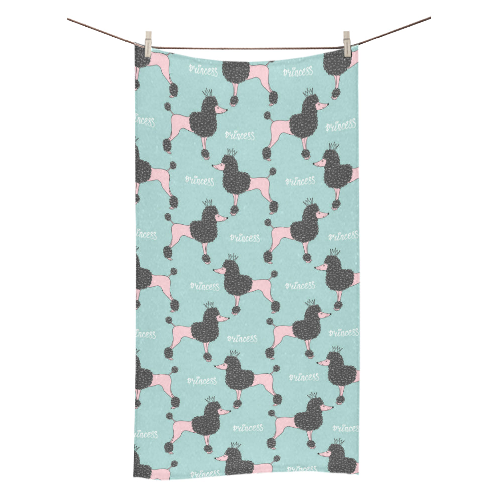 poodle dog green background Bath Towel 30"x56" is a uniqued design and limited item. It made to order, hand printed, and sewn with love in our factory.