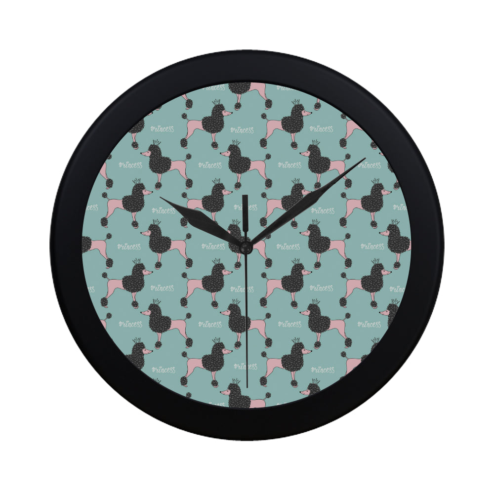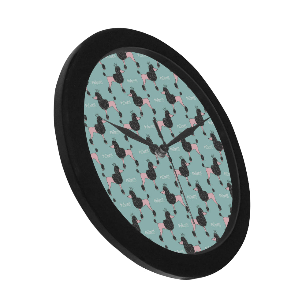 poodle dog green background Elegant Black Wall Clock is a uniqued design and limited item. It made to order, hand printed, and sewn with love in our factory.