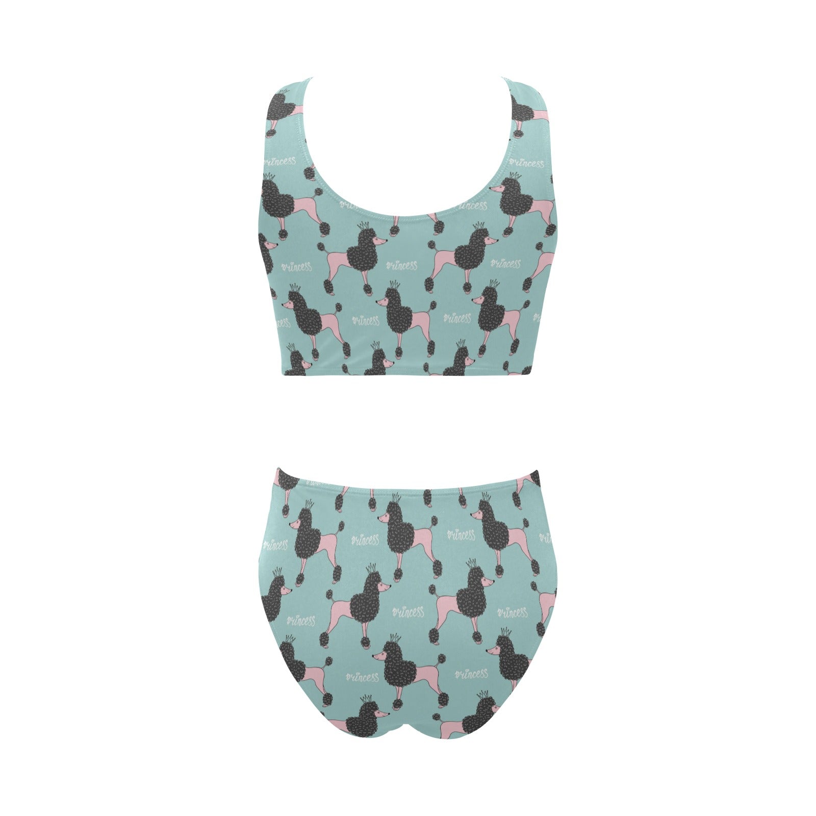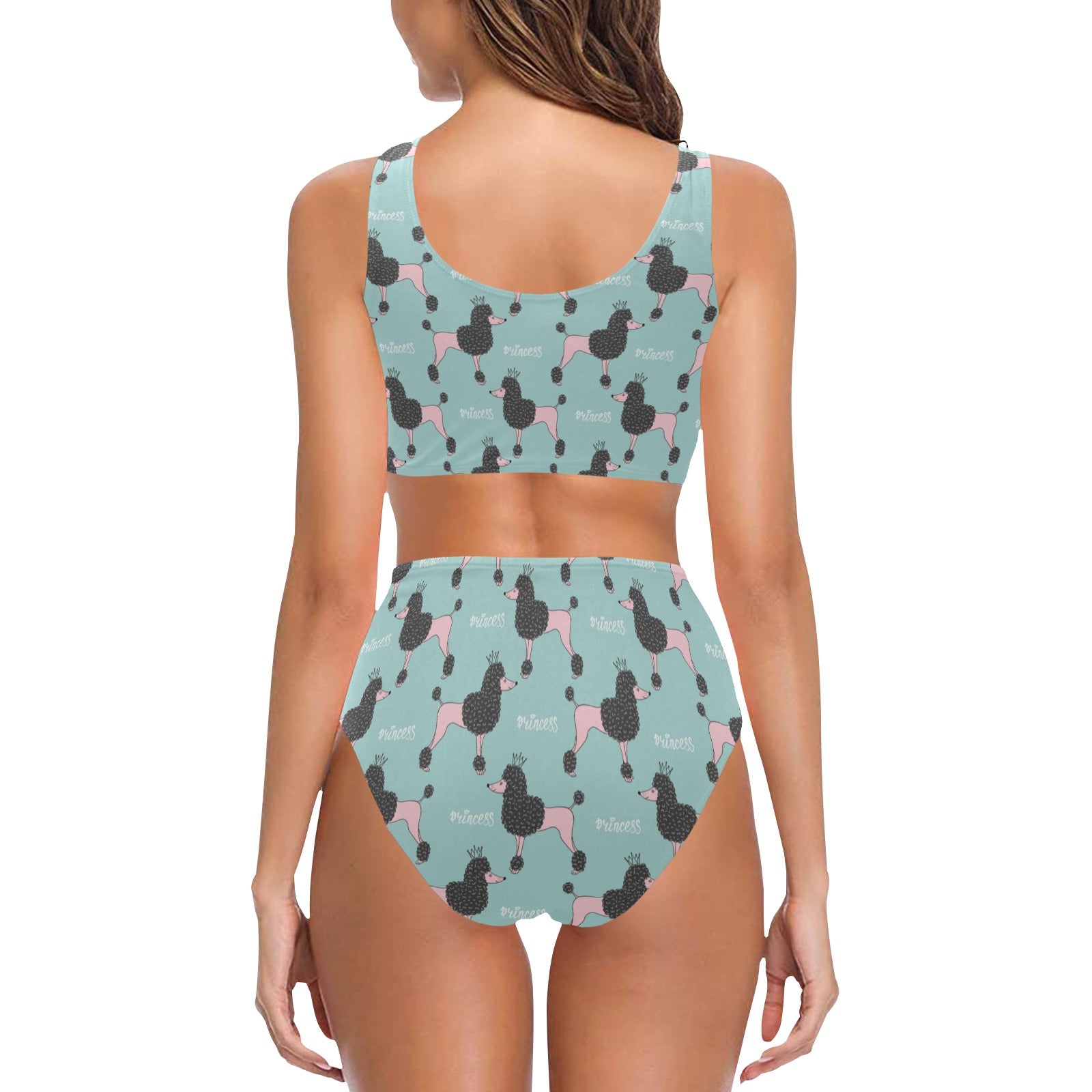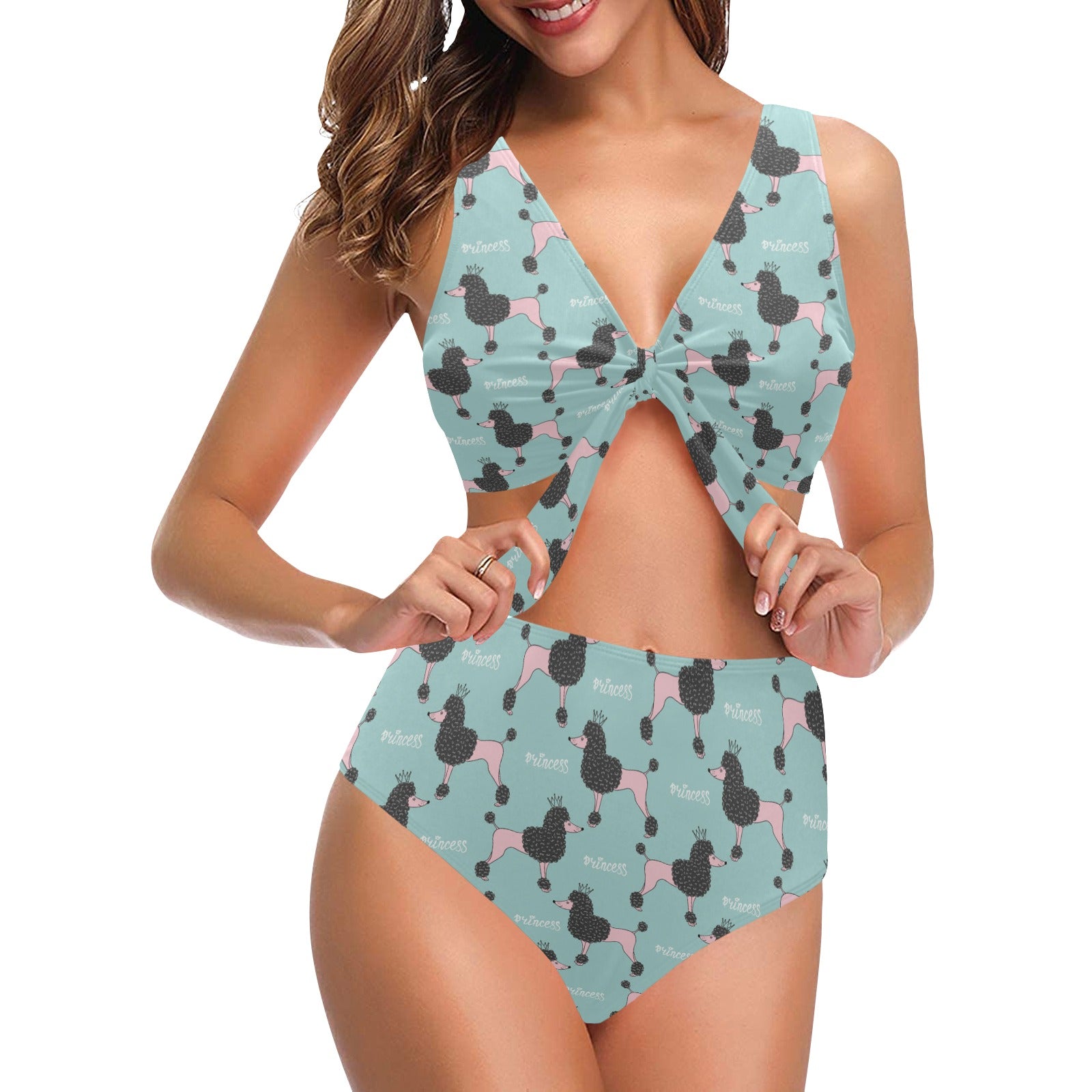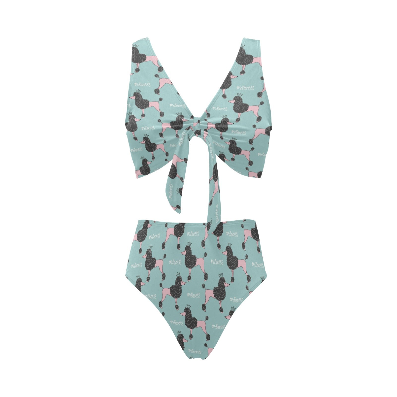 poodle dog green background Chest Bowknot High Waisted Bikini Swimsuit
