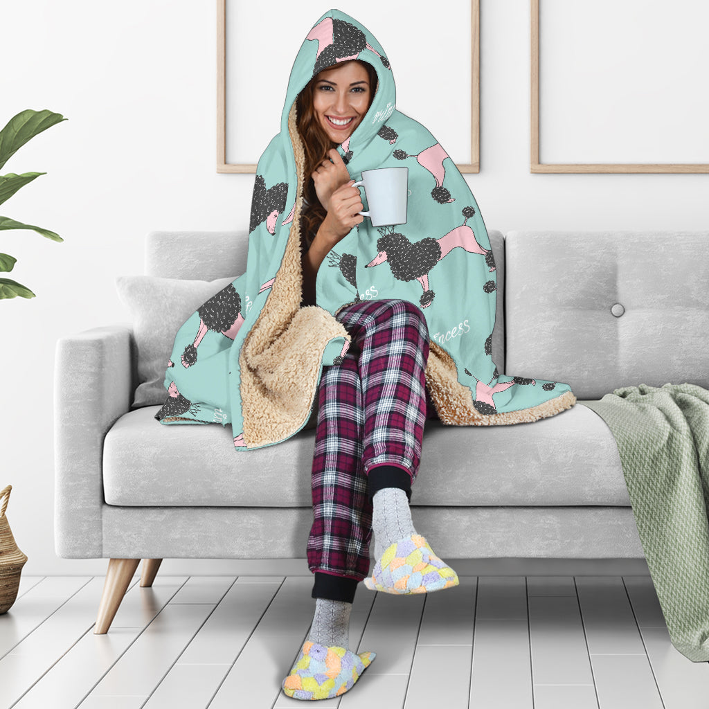 poodle dog green background Hooded Blanket are custom-made-to-order and handcrafted to the highest quality standards.