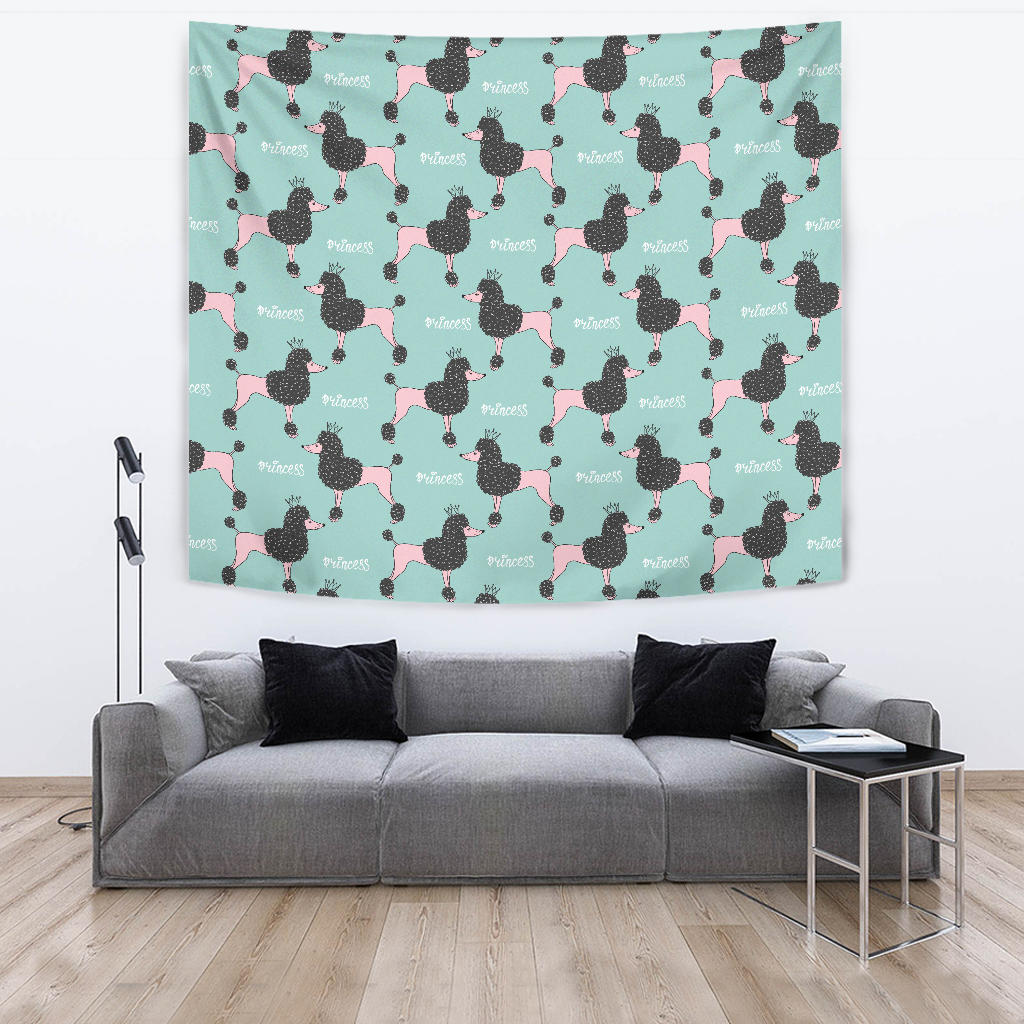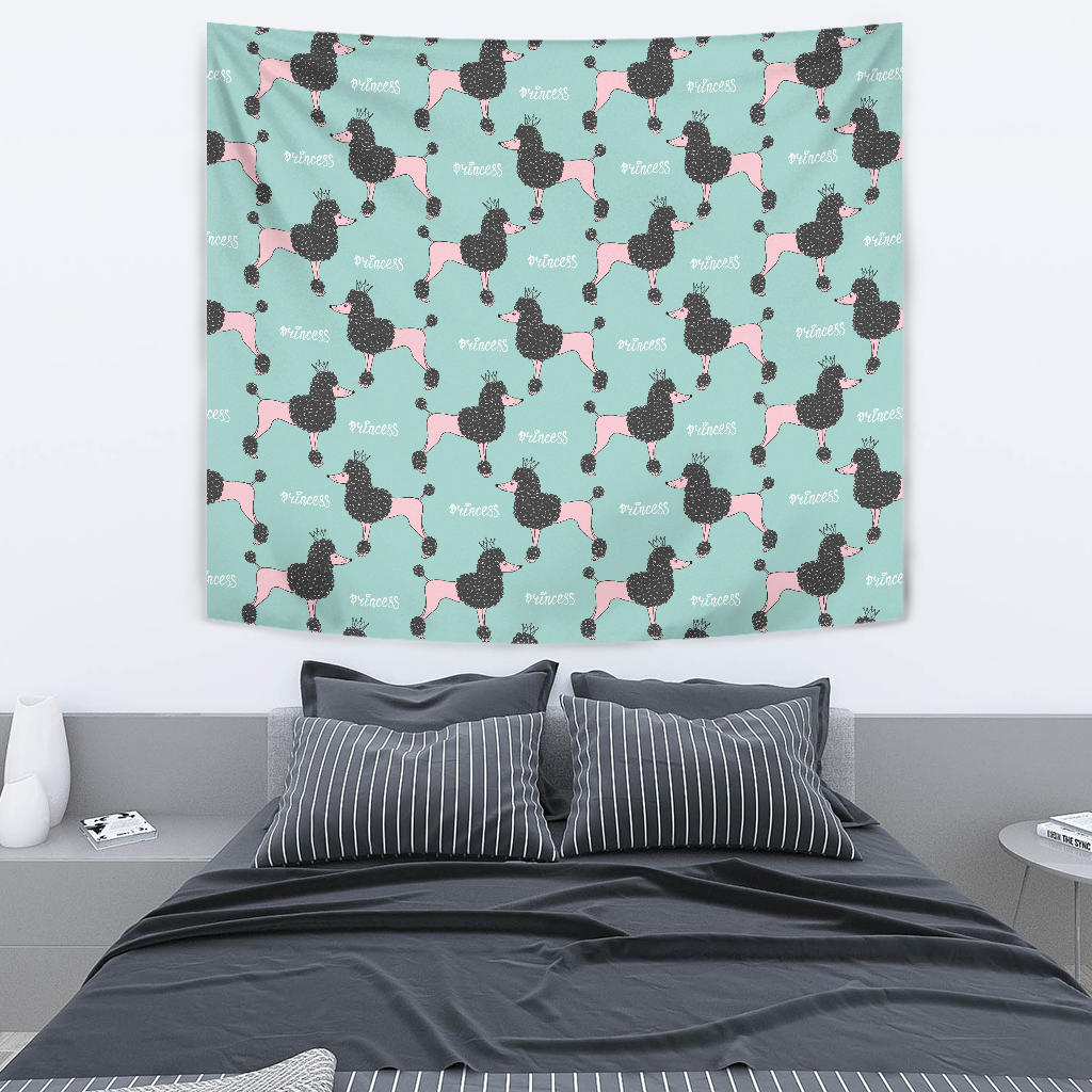 poodle dog green background Tapestry is a uniqued design and limited item. It made to order, hand printed, and sewn with love in our factory.