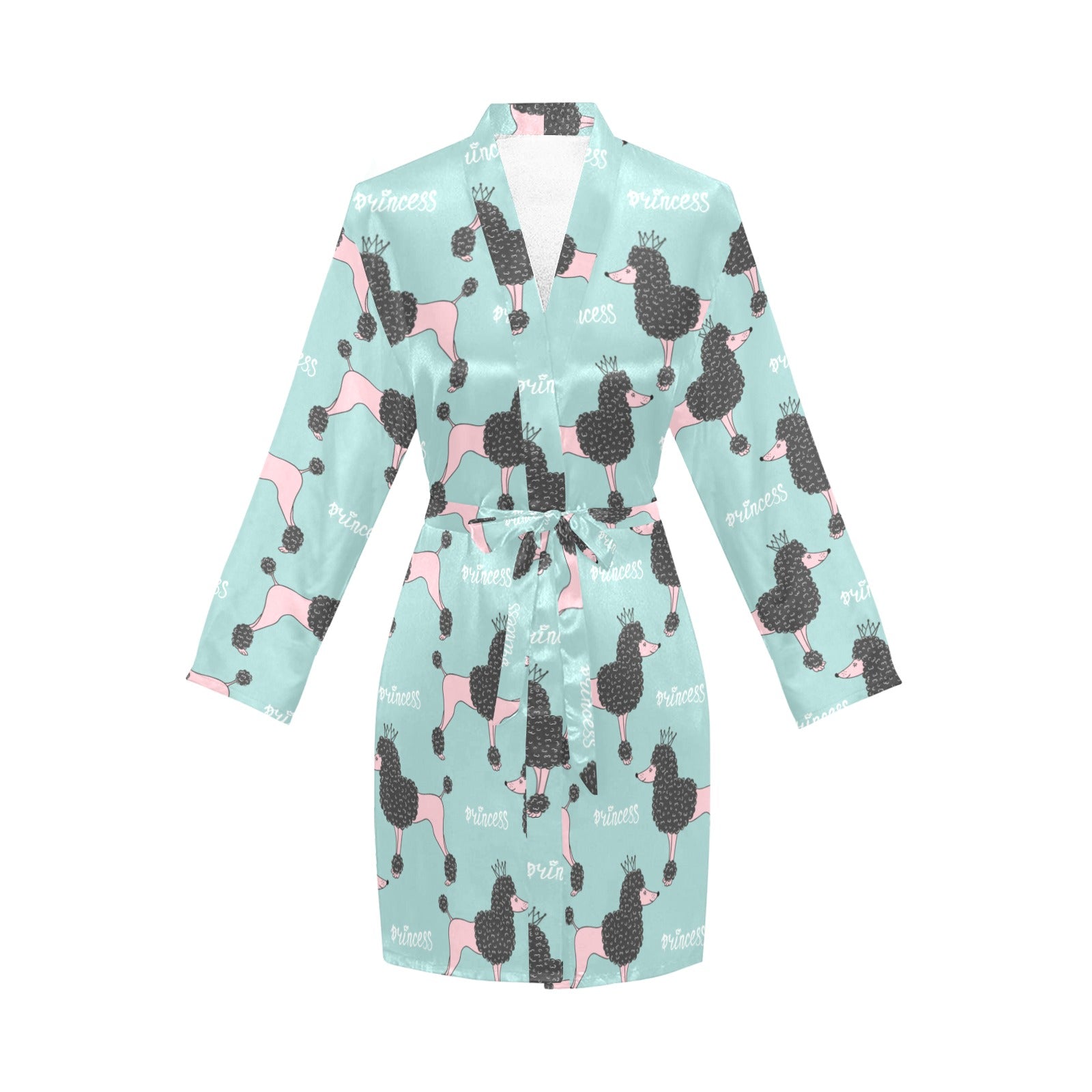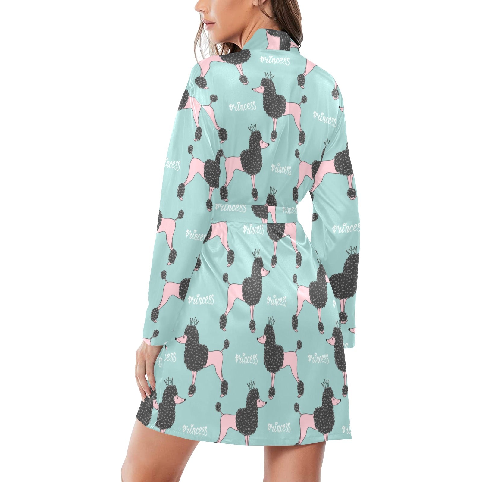 poodle dog green background Women's Long Sleeve Belted Night Robe