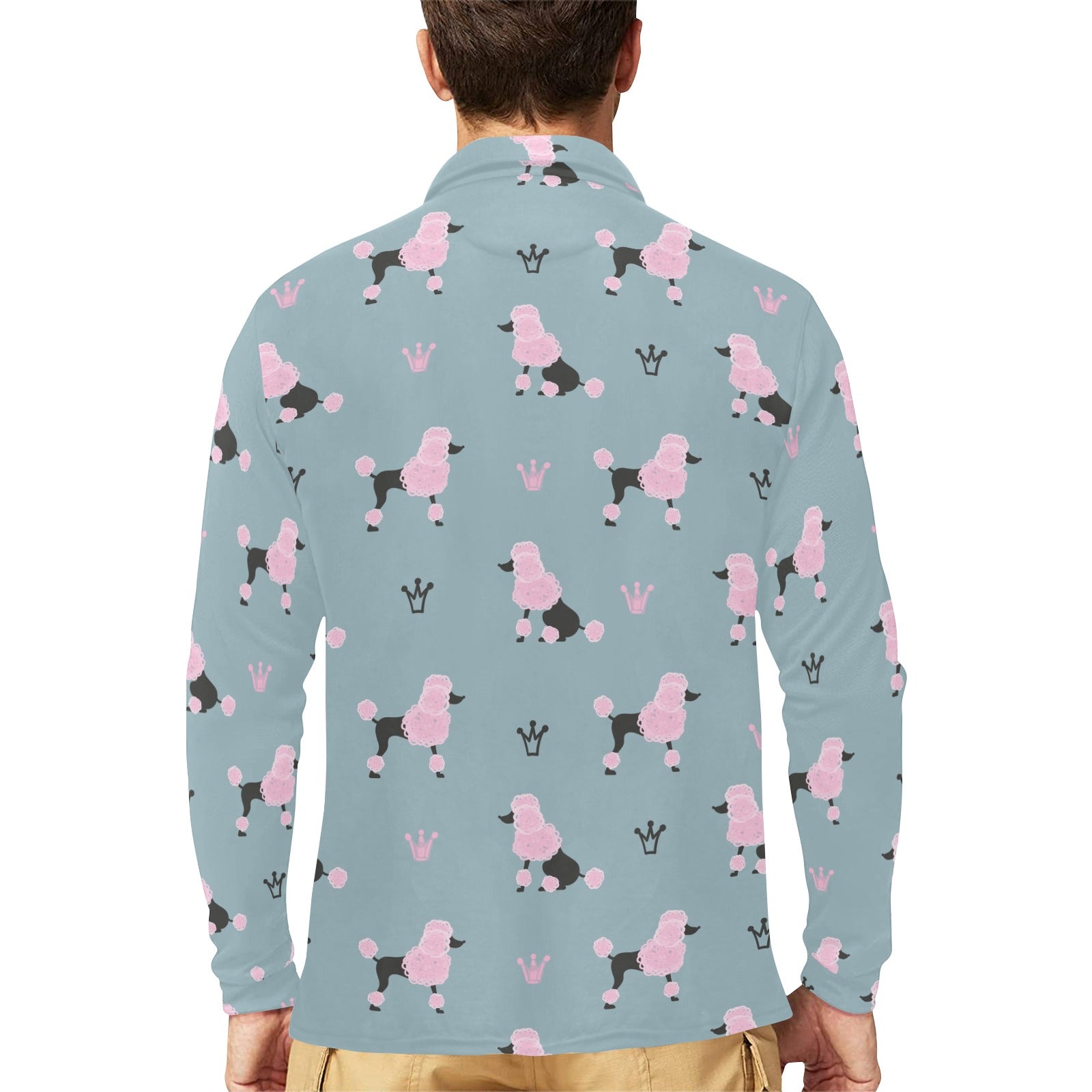 poodle dog pattern Men's Long Sleeve Polo Shirt
