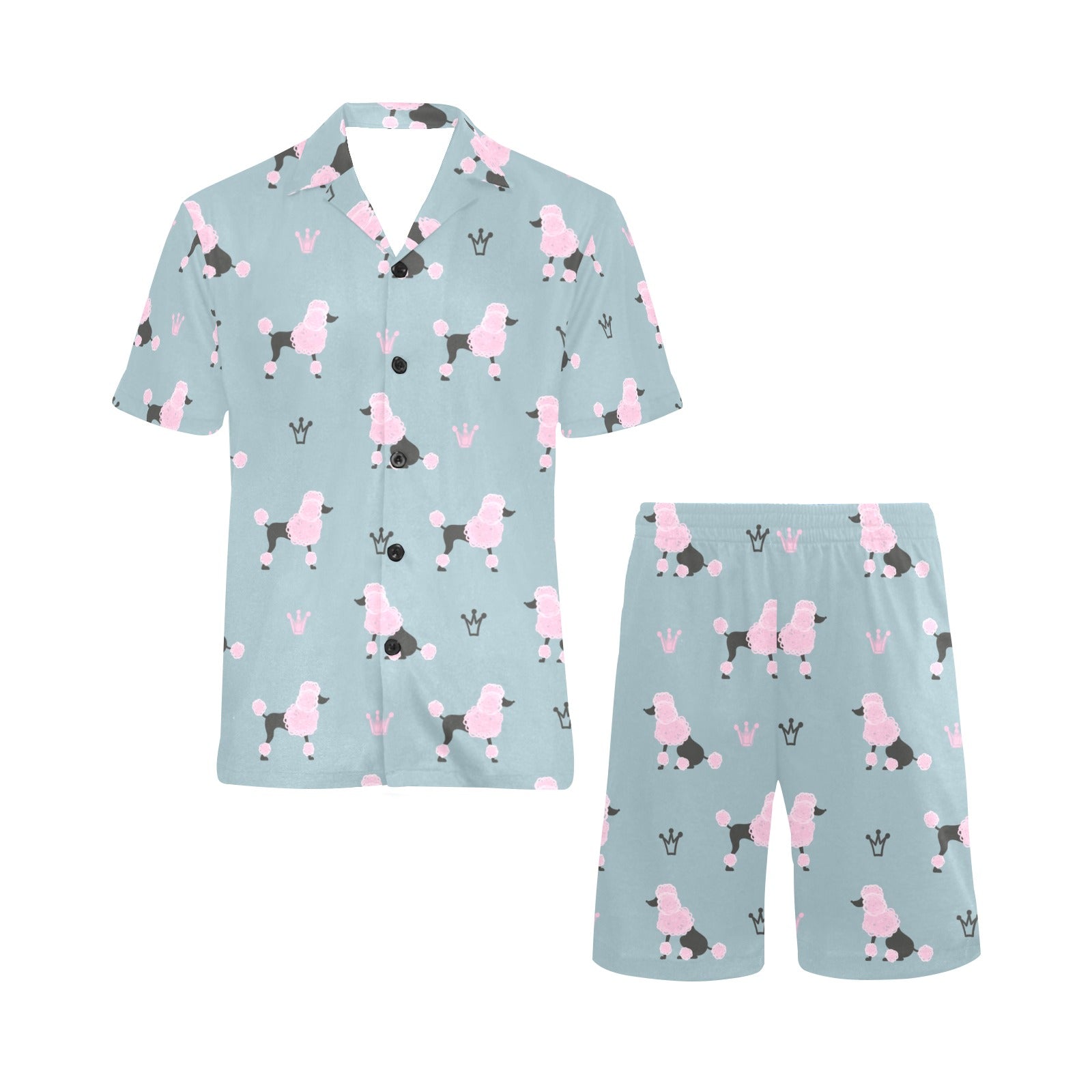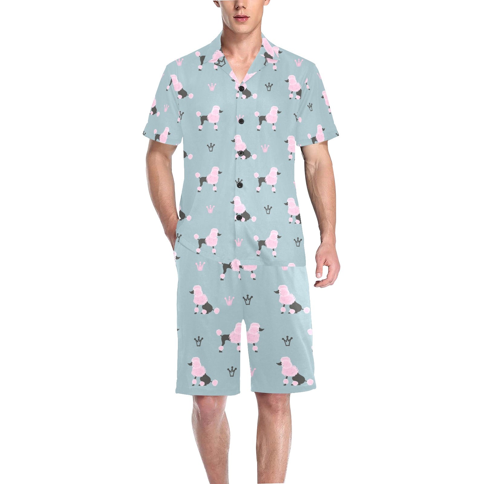 poodle dog pattern Men's V-Neck Short Pajama Set
