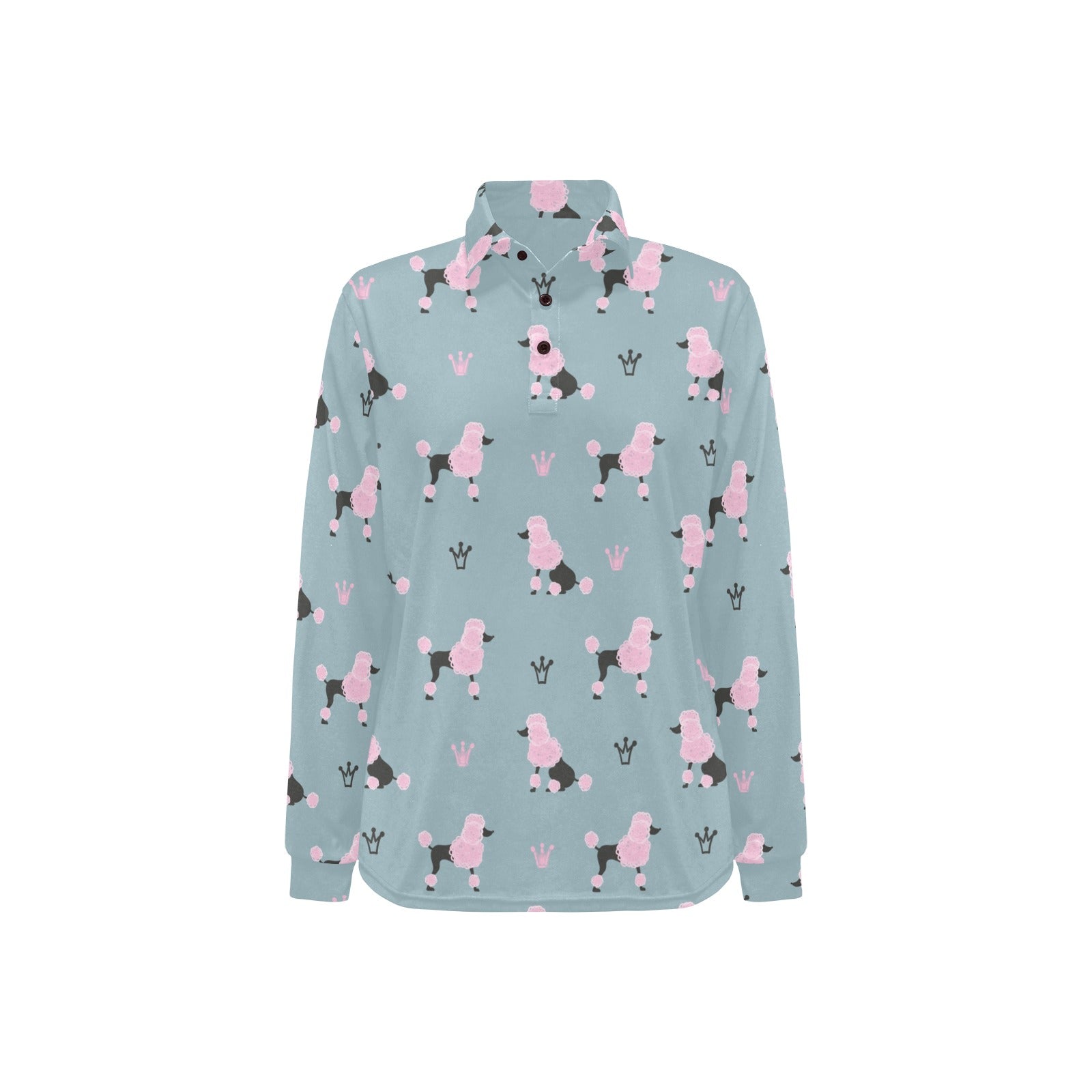 poodle dog pattern Women's Long Sleeve Polo Shirt