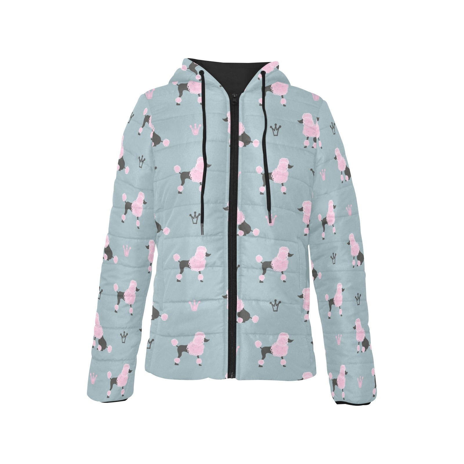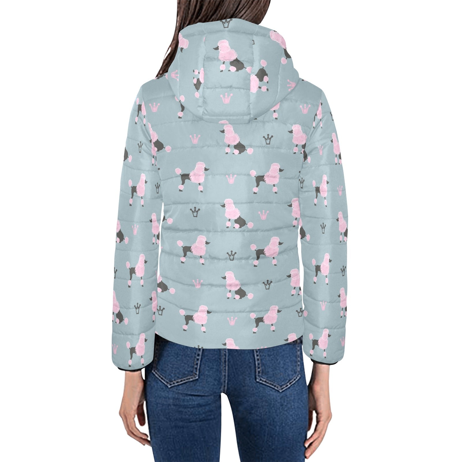 poodle dog pattern Women's Padded Hooded Jacket