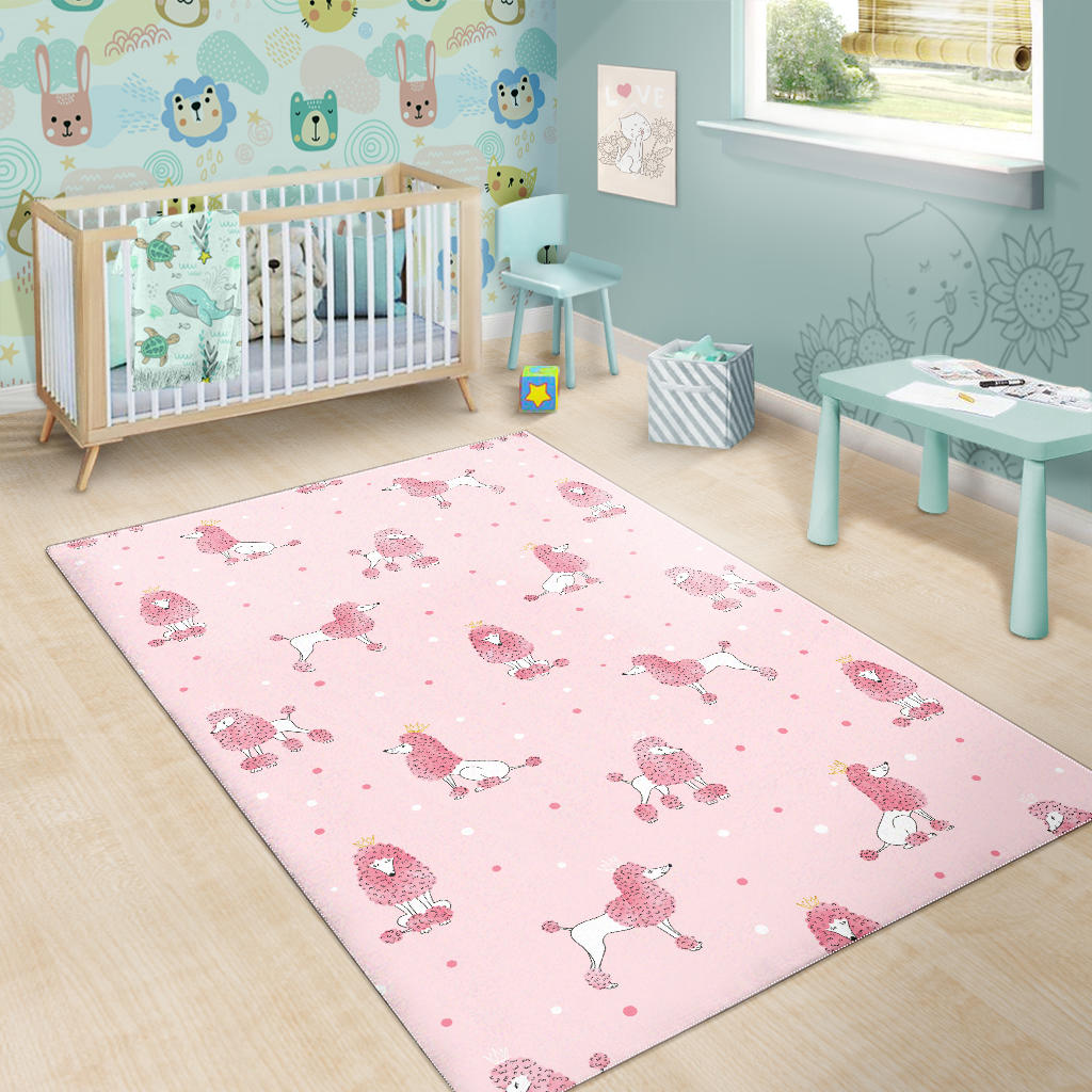 Poodle dog pink color theme Area RugPoodle dog pink color theme Area Rug is a uniqued design and limited item. It made to order, hand printed, and sewn with love in our factory.