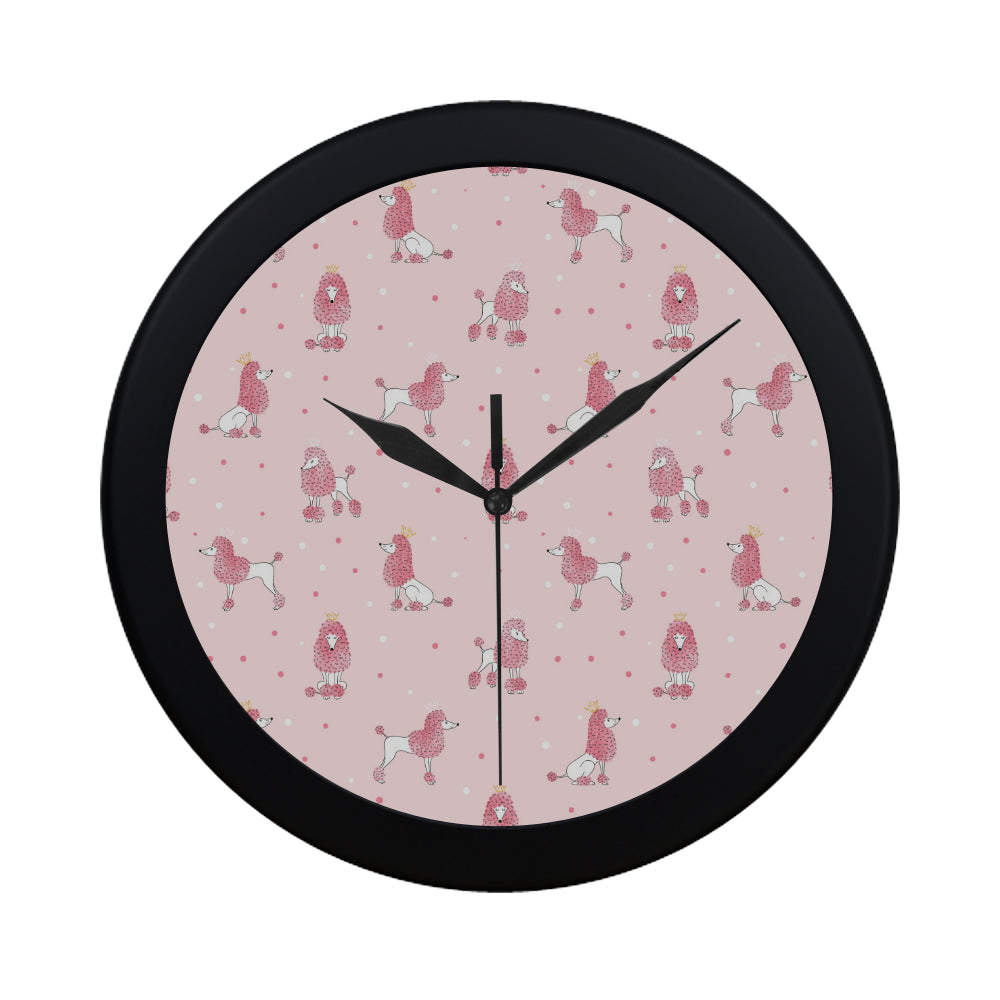 Poodle dog pink color theme Elegant Black Wall Clock is a uniqued design and limited item. It made to order, hand printed, and sewn with love in our factory.