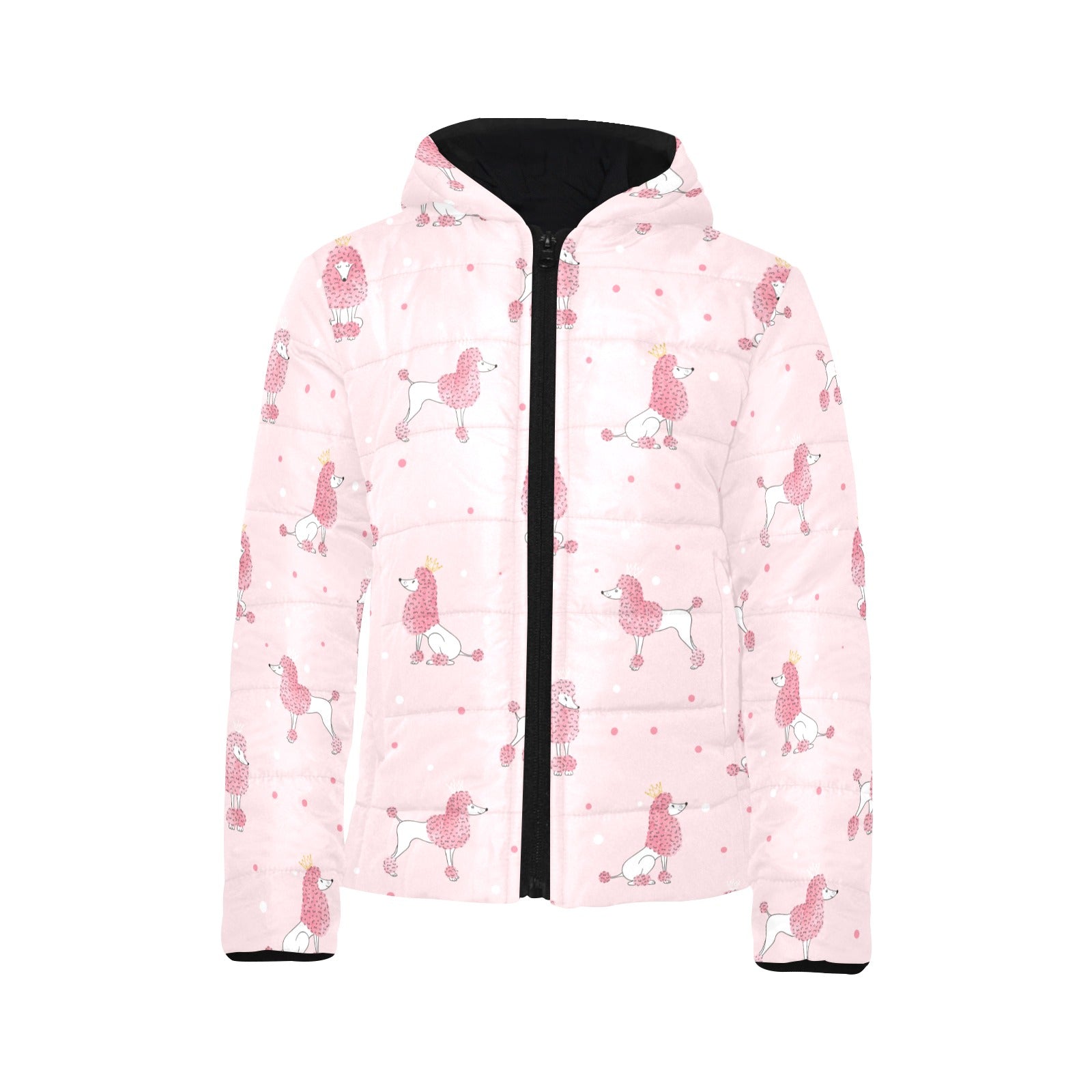 Poodle dog pink color theme Kids' Boys' Girls' Padded Hooded Jacket