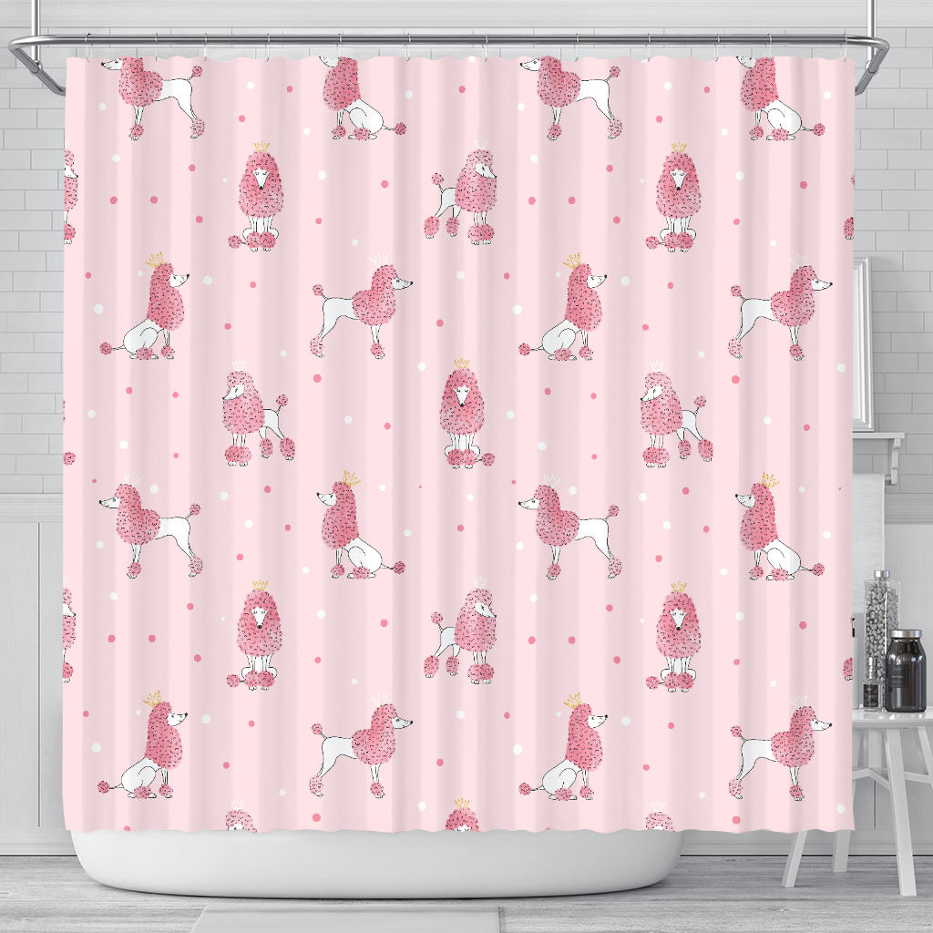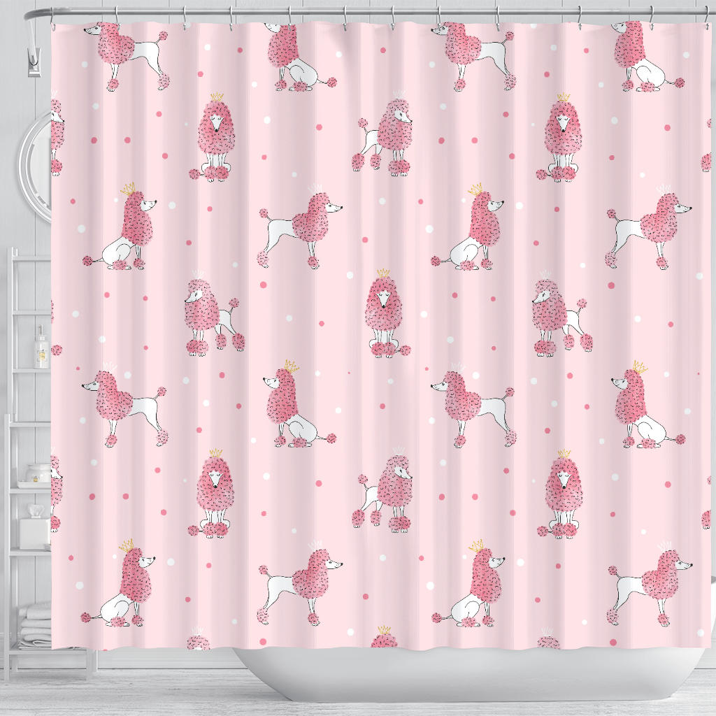 Poodle Dog Pink Color Theme Shower Curtain Fulfilled In US