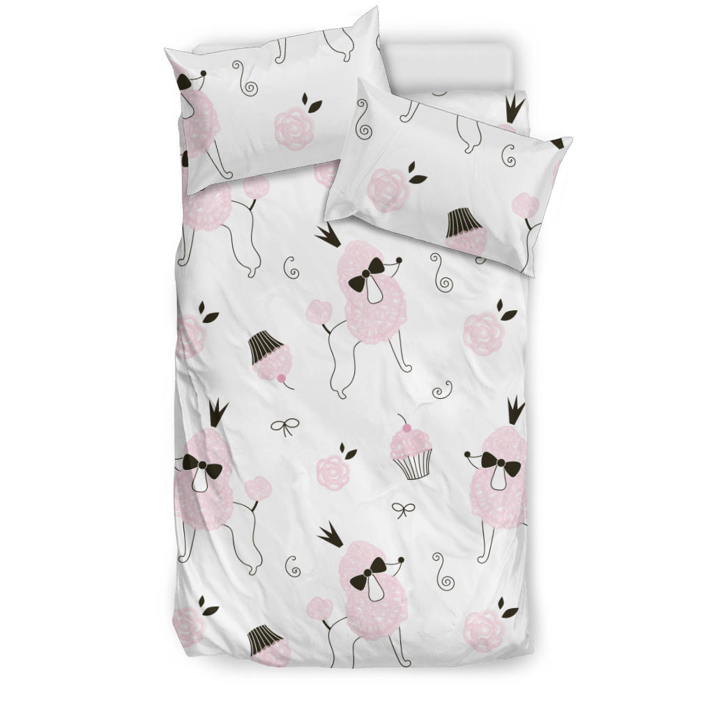 Poodle Dog Rose Cake Pattern Bedding Set.