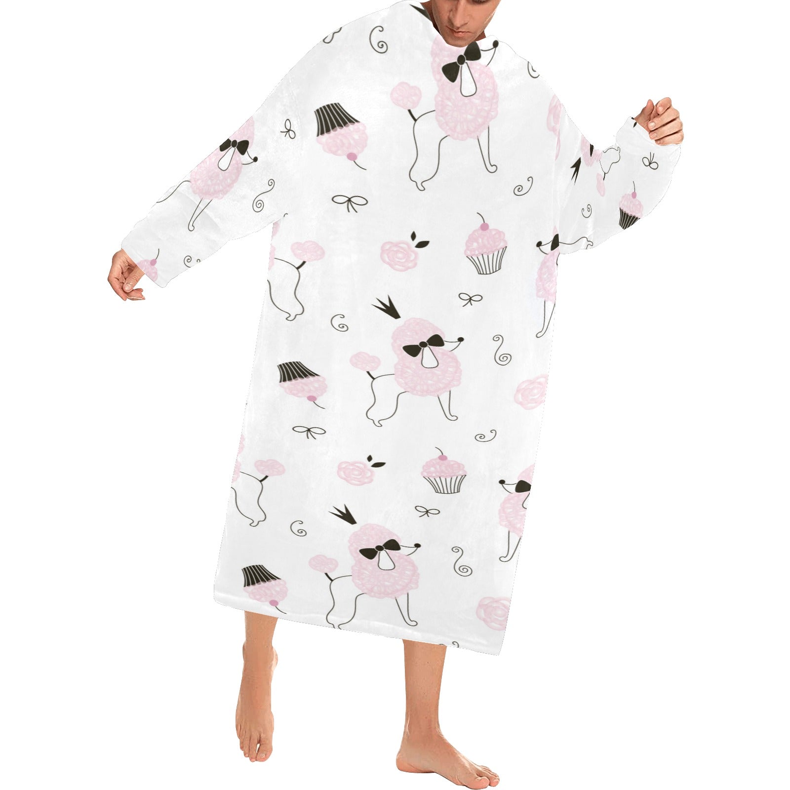 Poodle dog rose cake pattern Blanket Robe with Sleeves