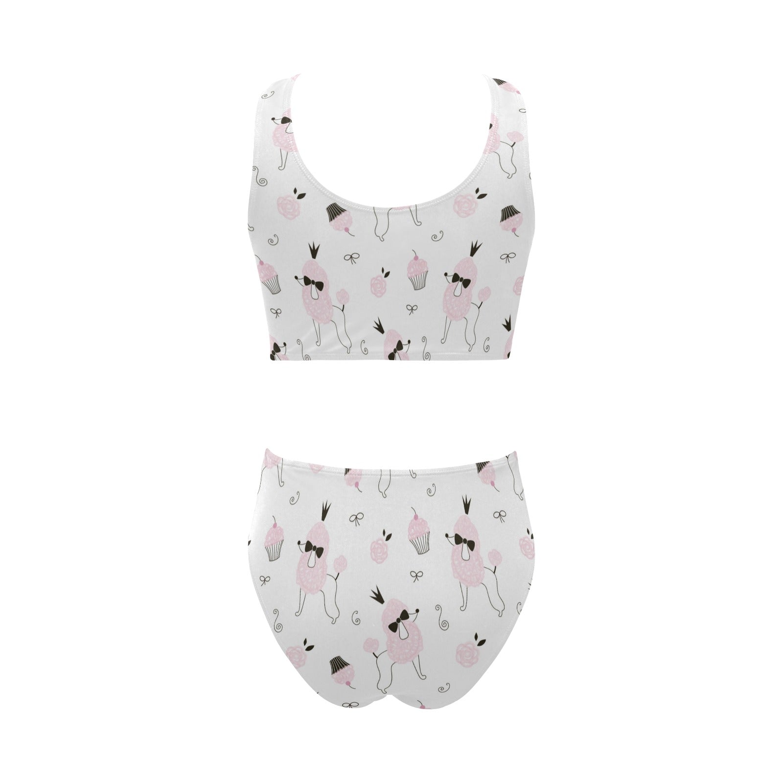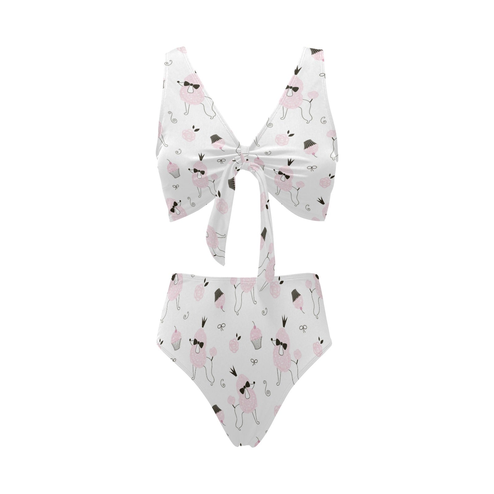 Poodle dog rose cake pattern Chest Bowknot High Waisted Bikini Swimsuit
