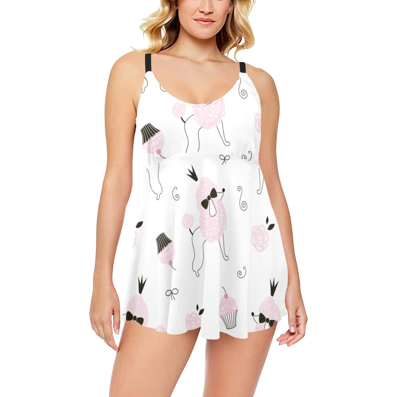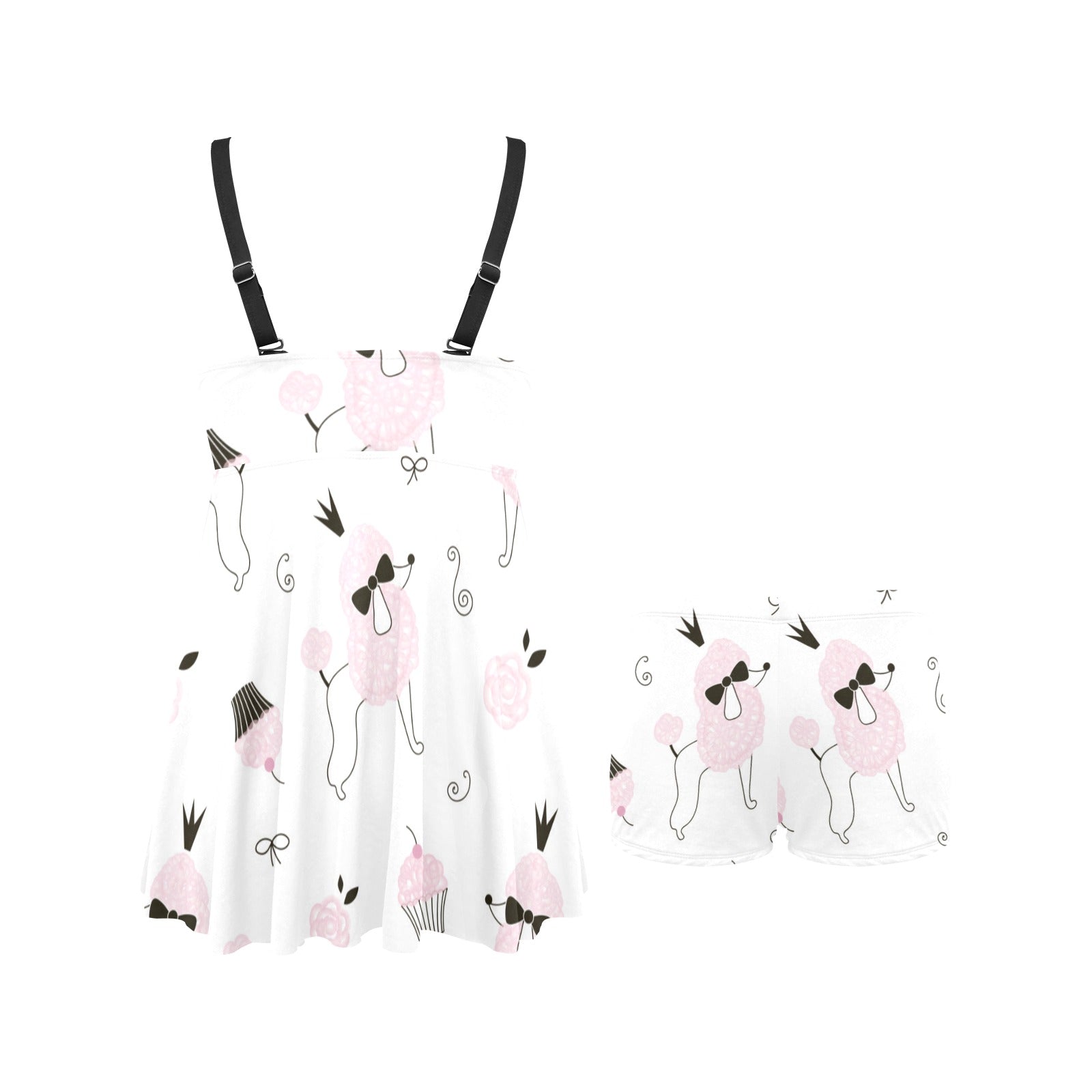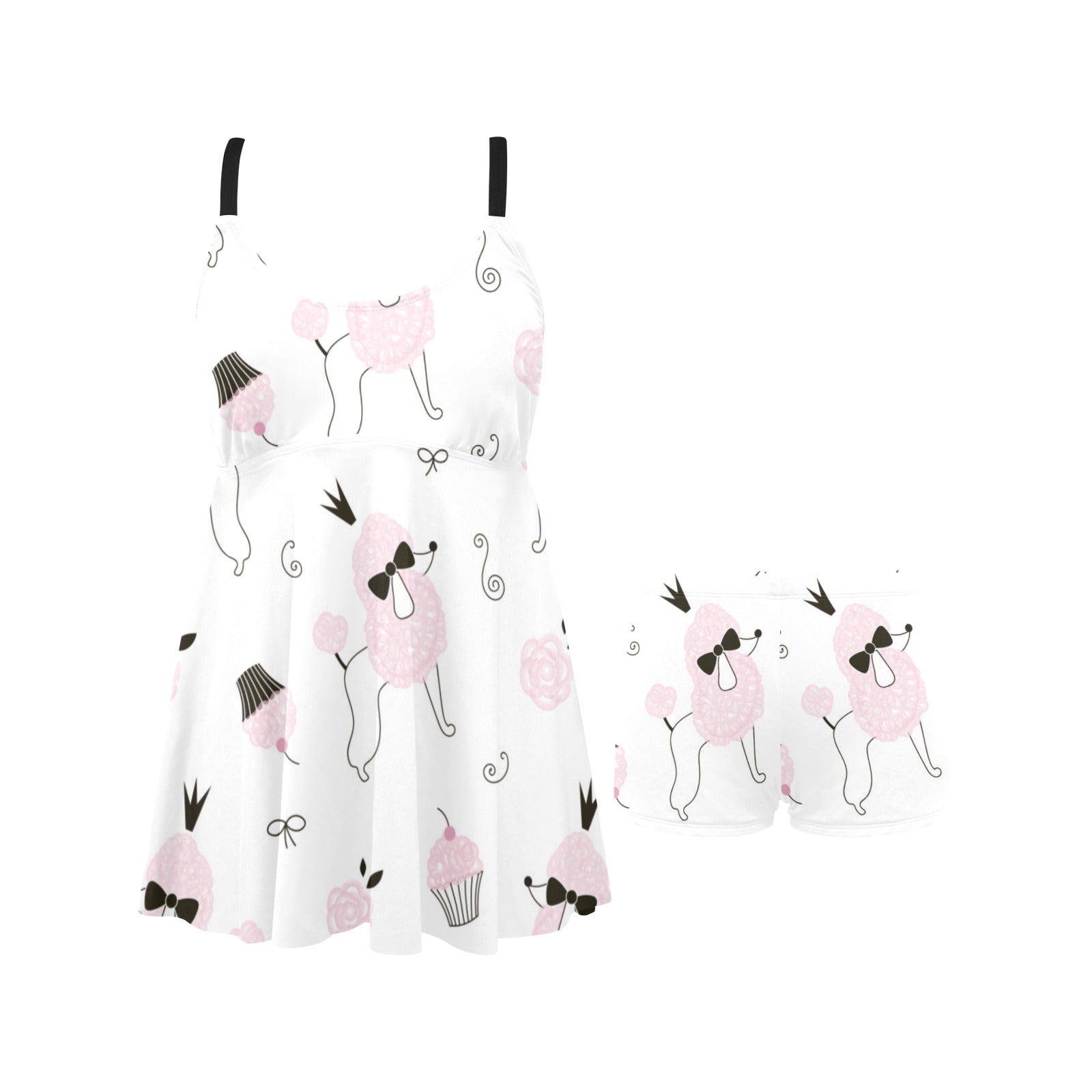 Poodle dog rose cake pattern Chest Sexy Pleated Two Piece Swim Dress