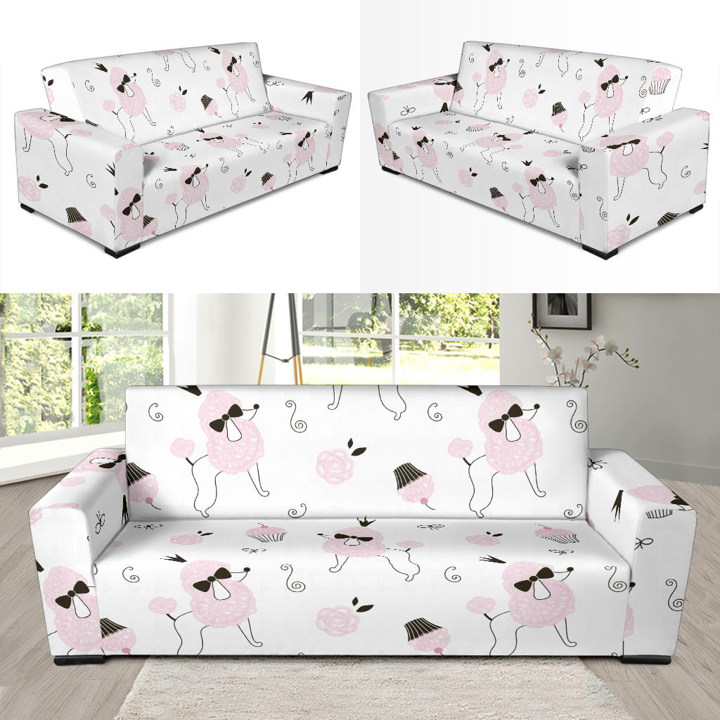 Poodle Dog Rose Cake Pattern Sofa Slipcover