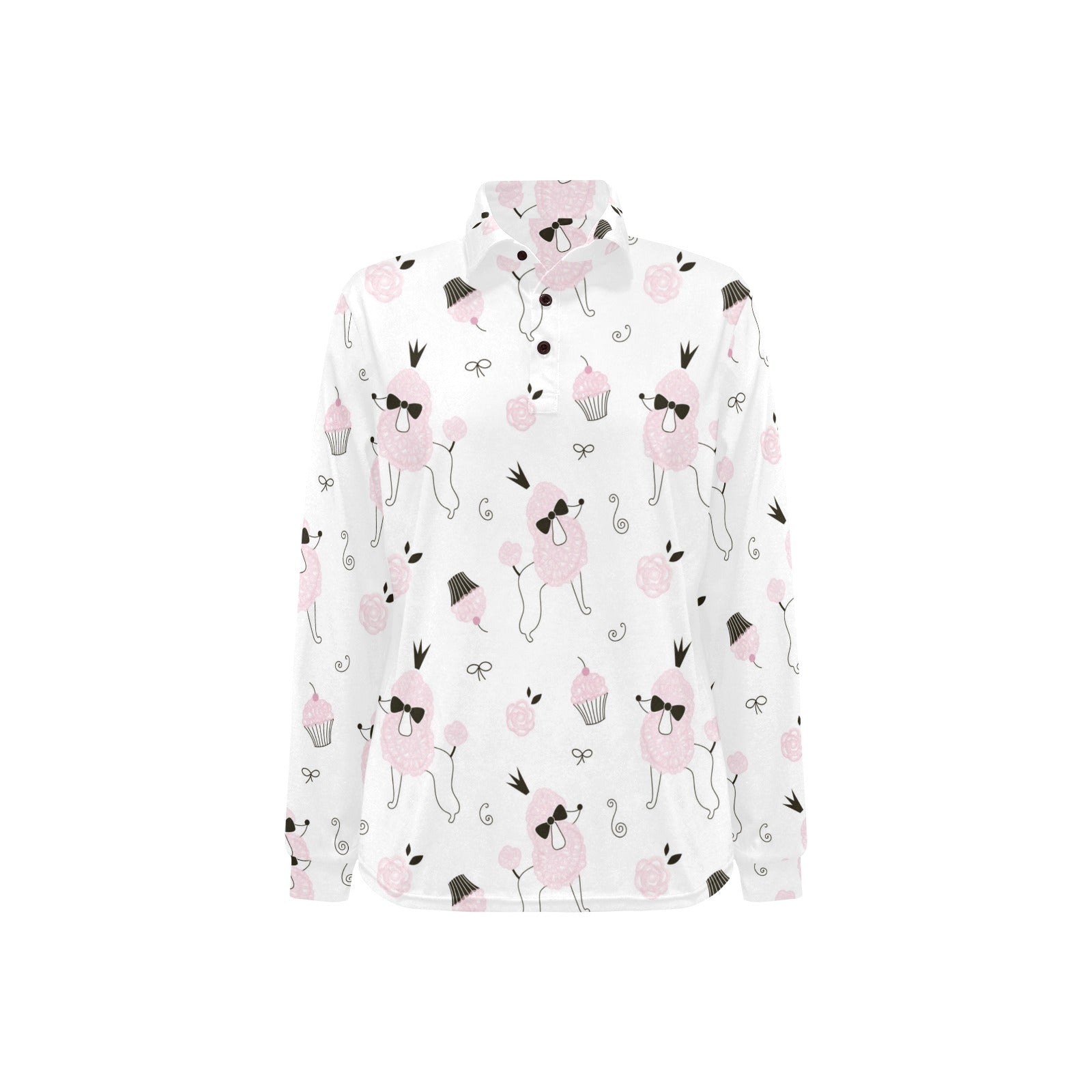 Poodle dog rose cake pattern Women's Long Sleeve Polo Shirt