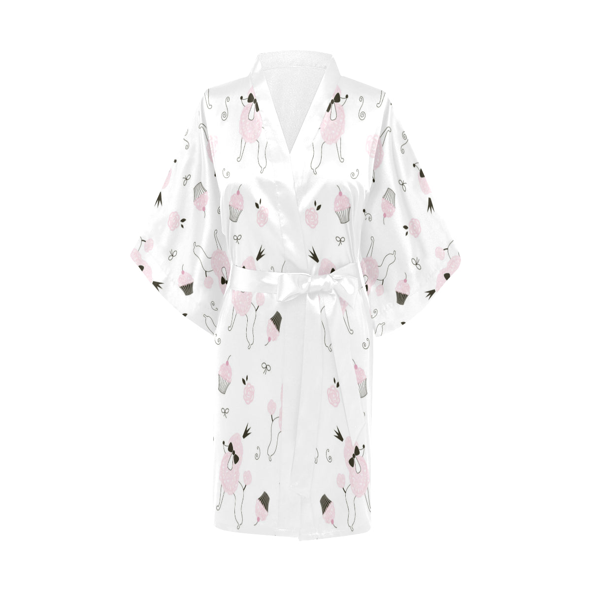 Poodle dog rose cake pattern Women's Short Kimono Robe is a uniqued design and limited item. It made to order, hand printed, and sewn with love in our factory.
