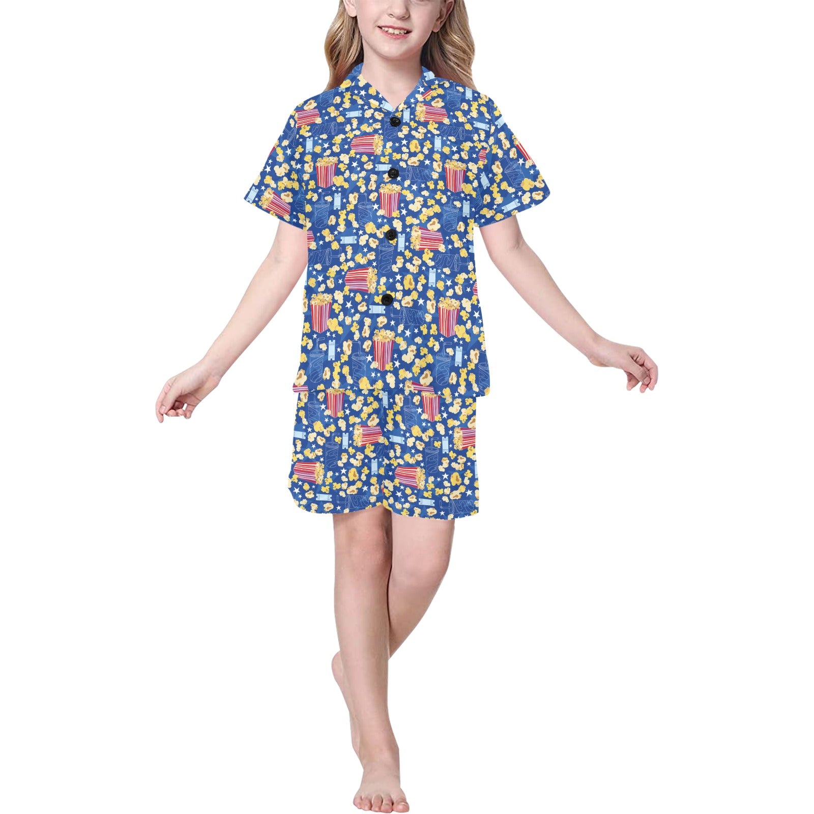 Popcorn Pattern Print Design 01 Kids' Boys' Girls' V-Neck Short Pajama Set