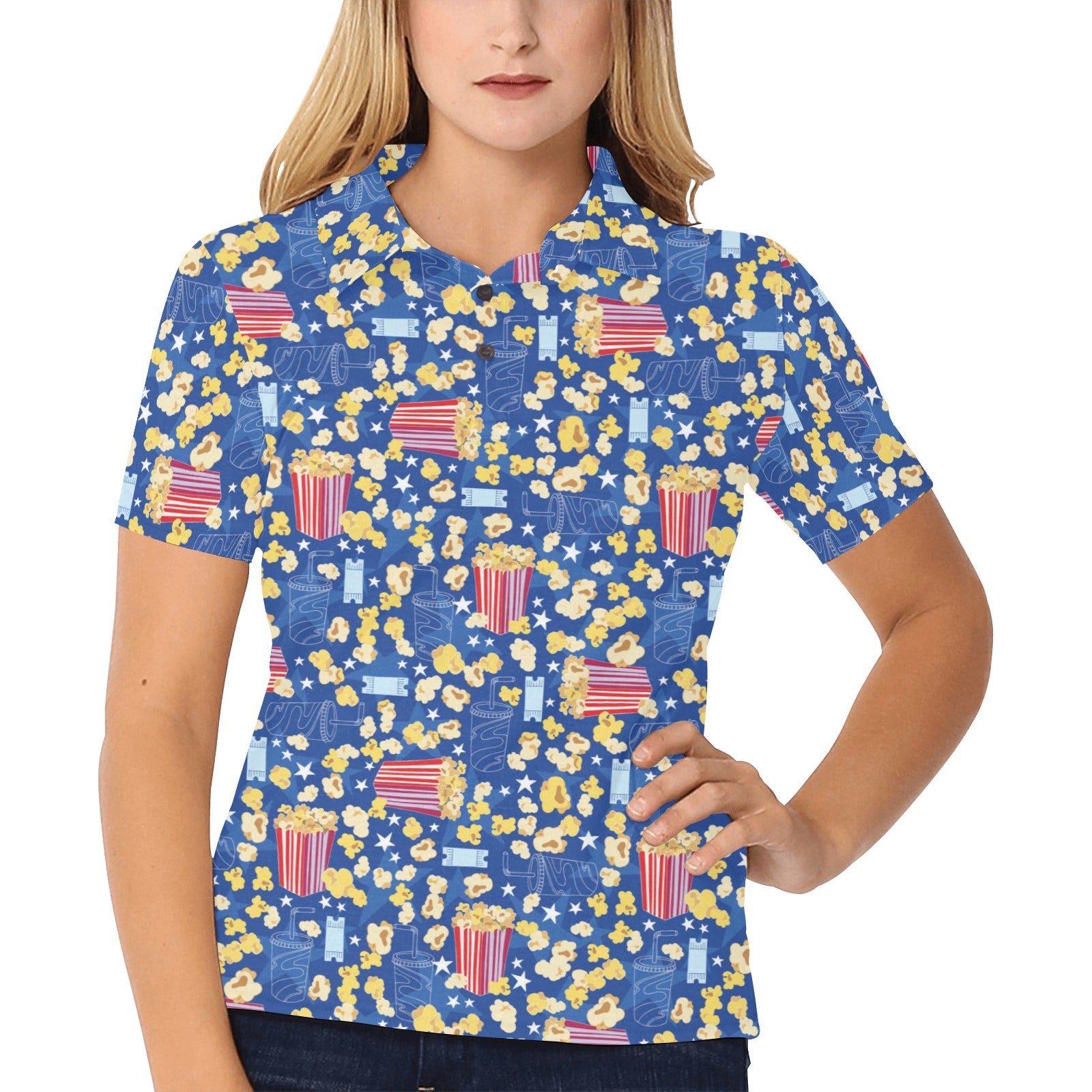 Popcorn Pattern Print Design 01 Women's All Over Print Polo Shirt
