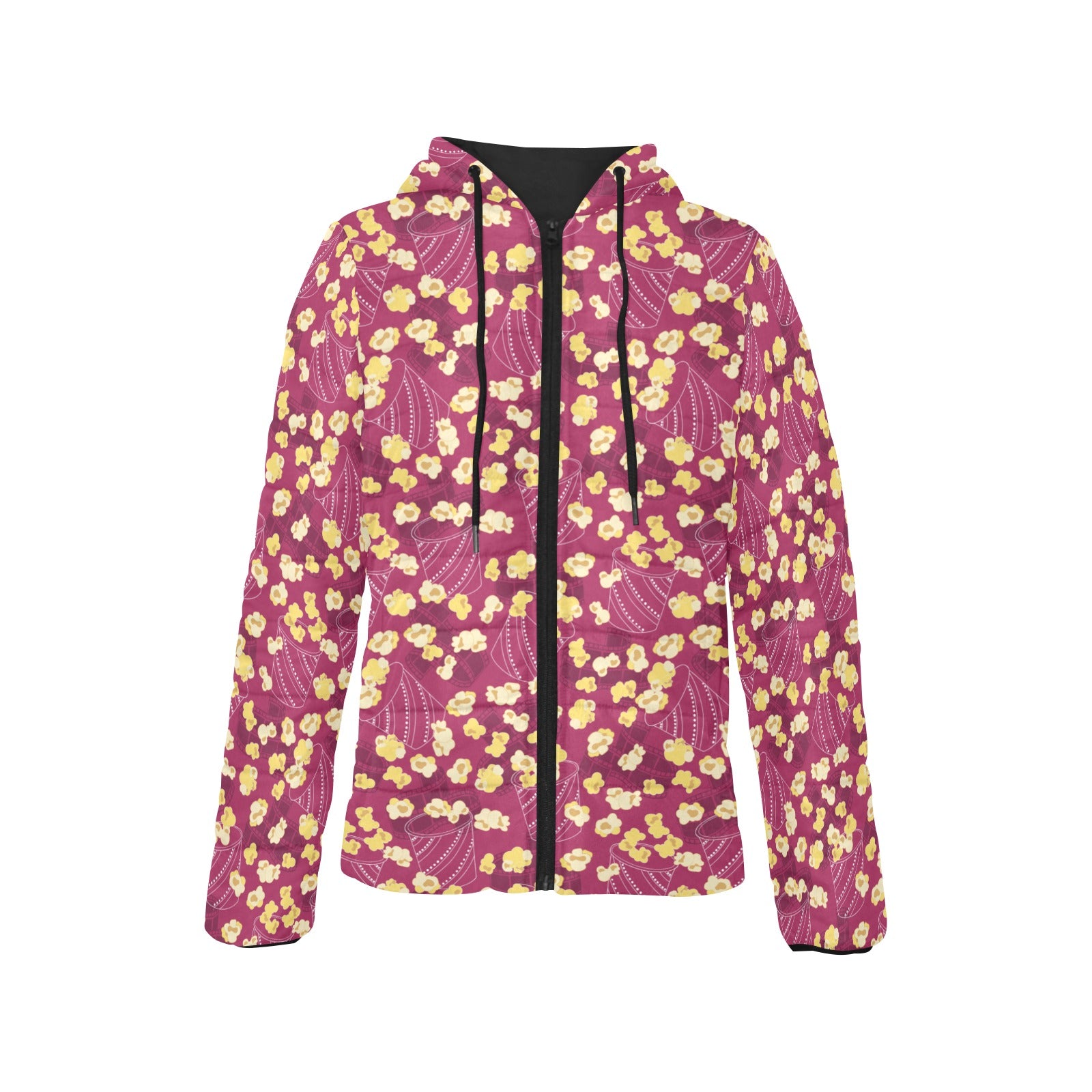 Popcorn Pattern Print Design 02 Women's Padded Hooded Jacket