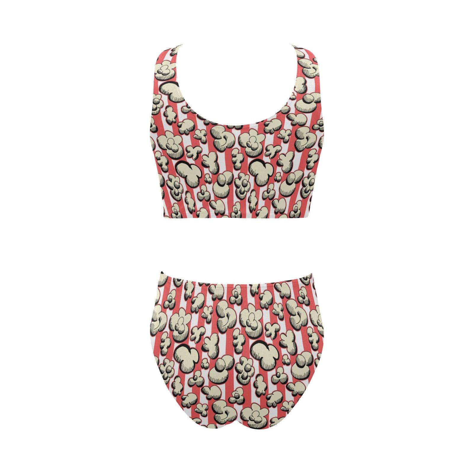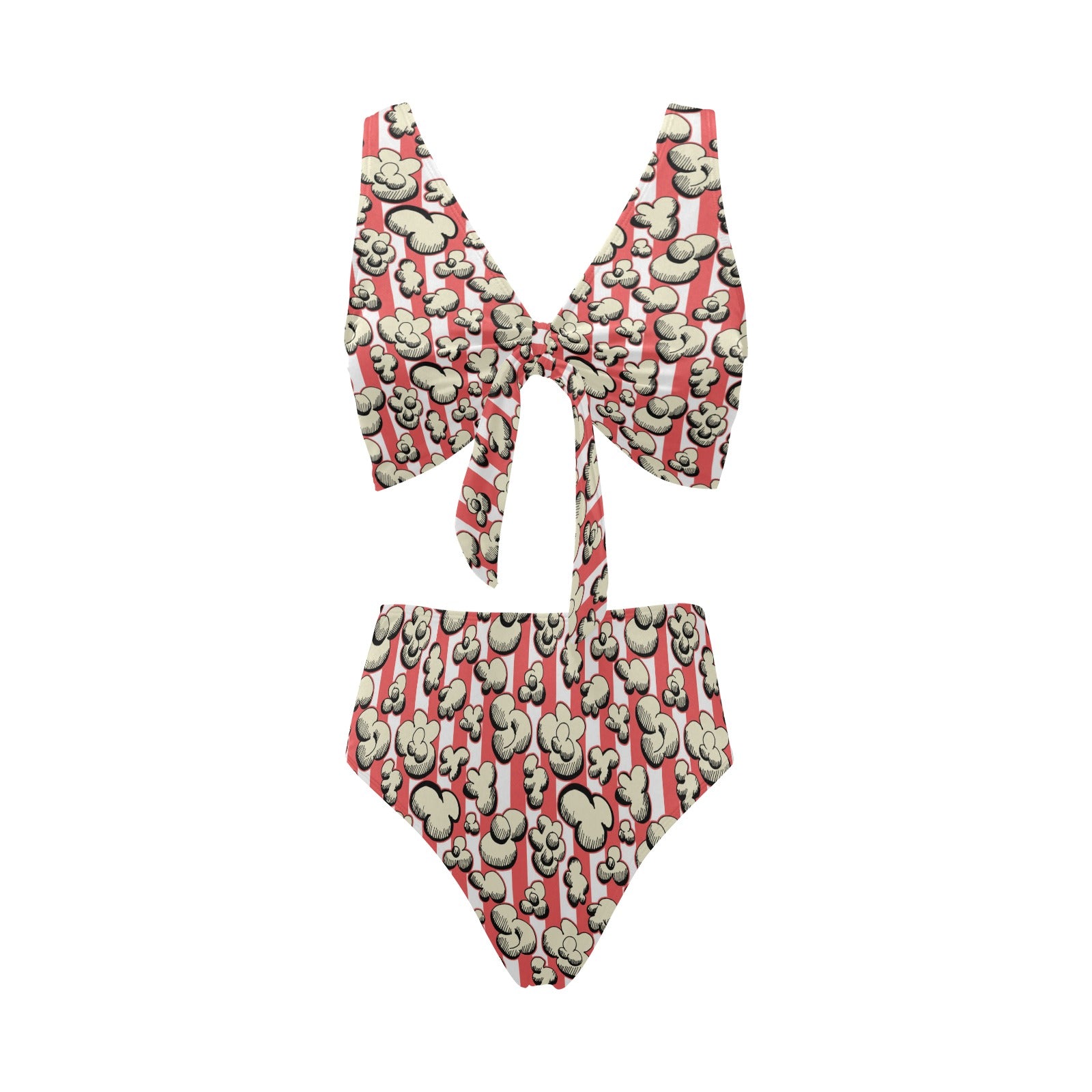 Popcorn Pattern Print Design 05 Chest Bowknot High Waisted Bikini Swimsuit