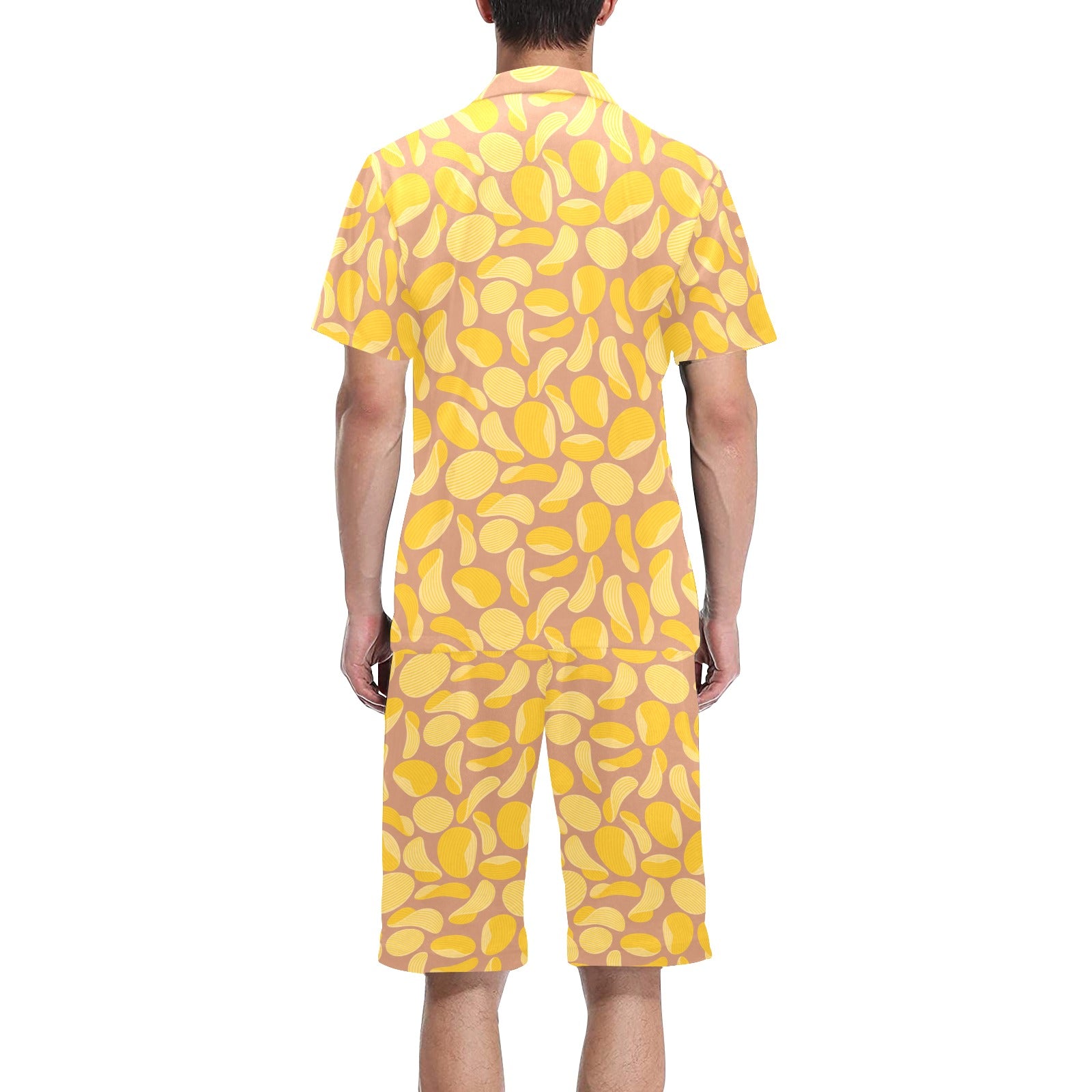Potato Chips Pattern Print Design 01 Men's V-Neck Short Pajama Set