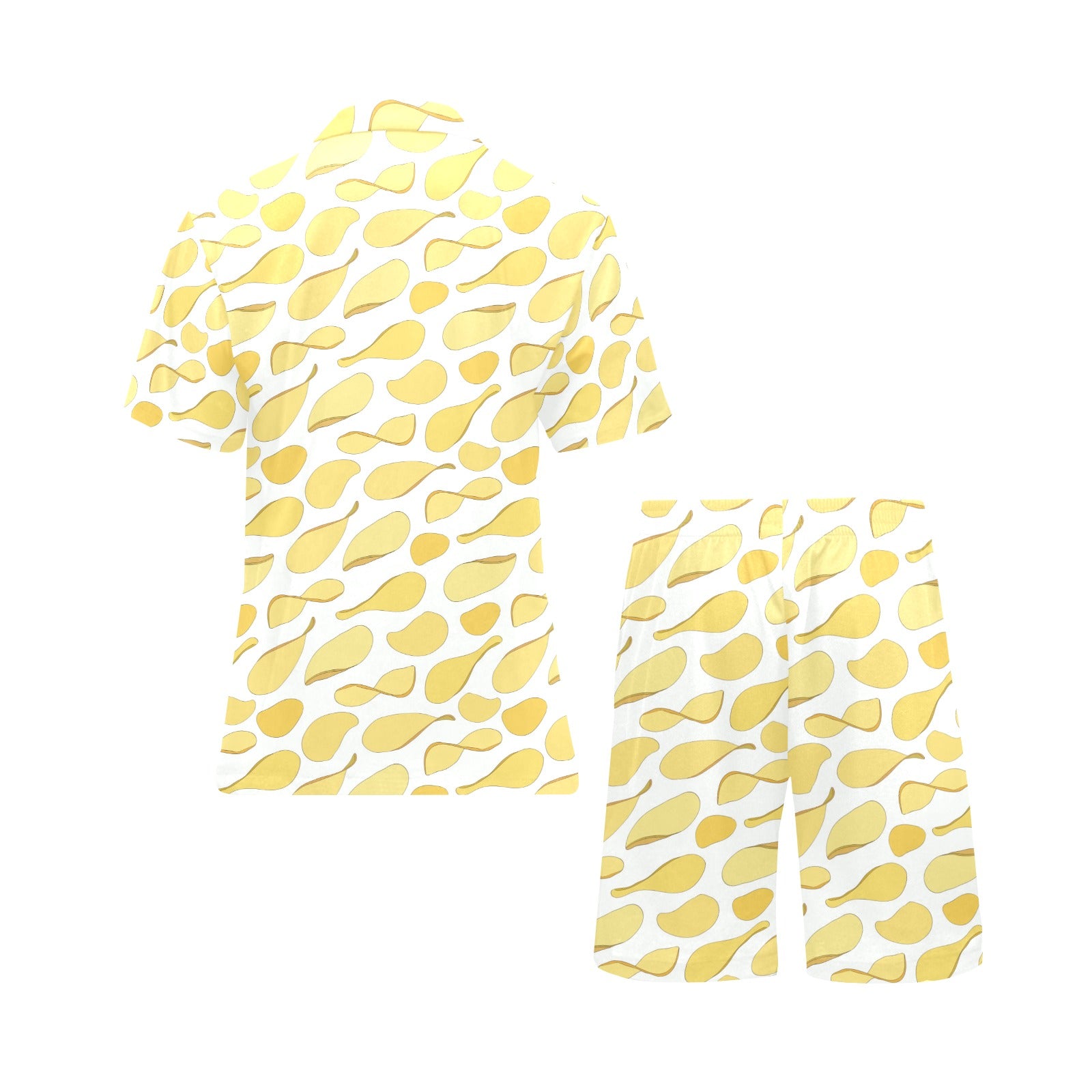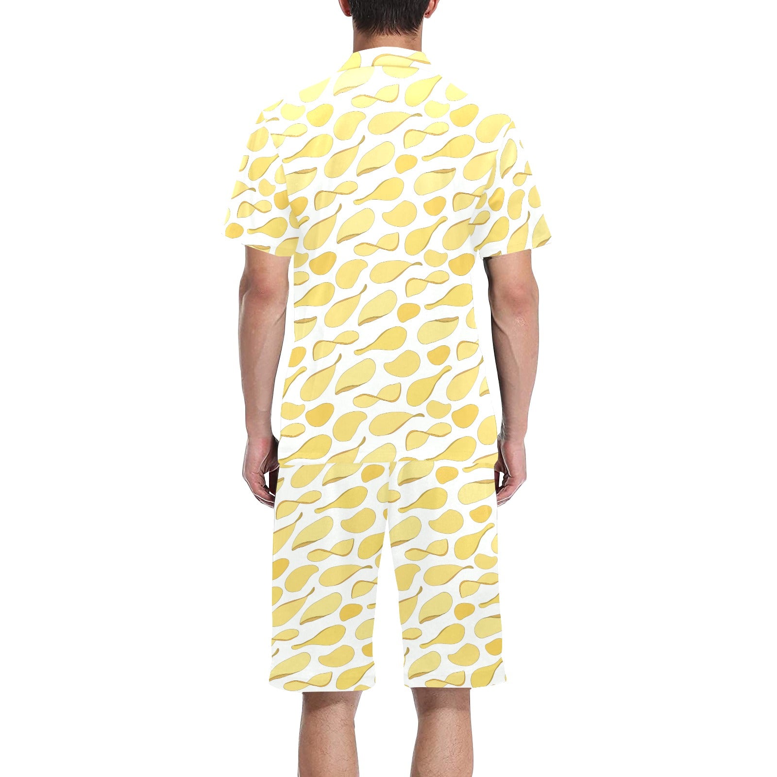 Potato Chips Pattern Print Design 02 Men's V-Neck Short Pajama Set