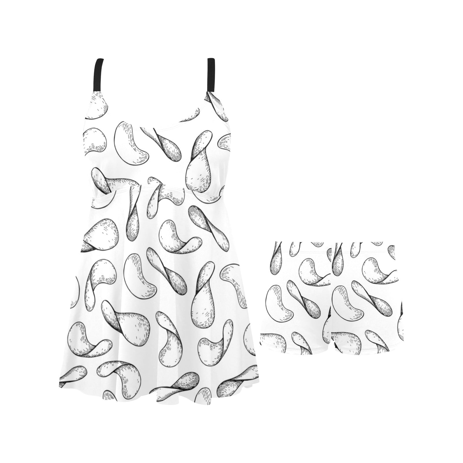 Potato Chips Pattern Print Design 04 Chest Sexy Pleated Two Piece Swim Dress
