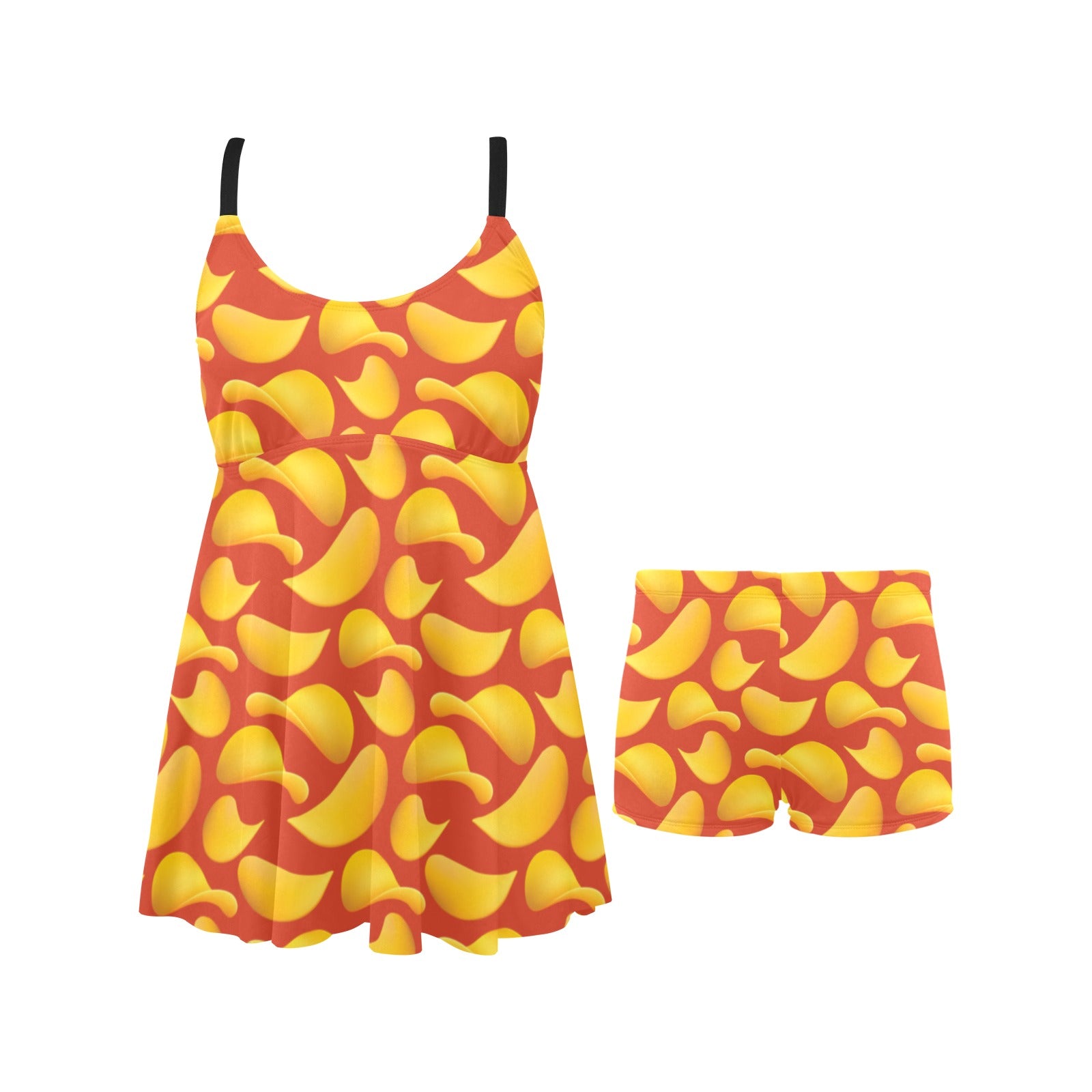 Potato Chips Pattern Print Design 05 Chest Sexy Pleated Two Piece Swim Dress